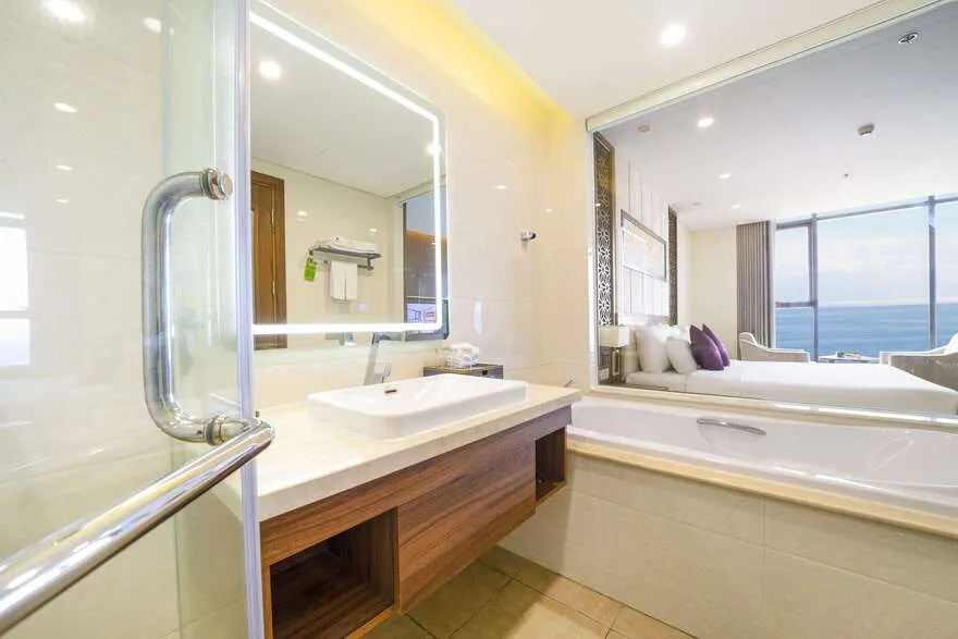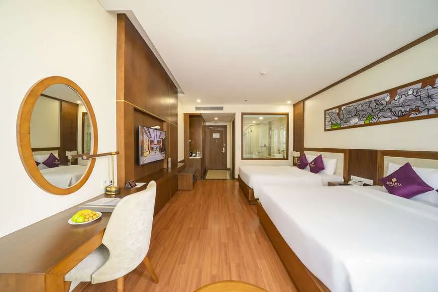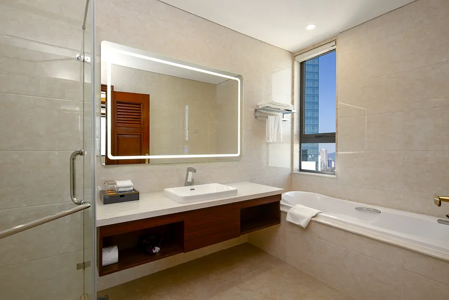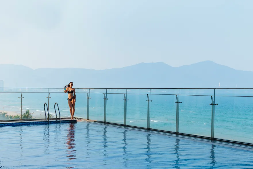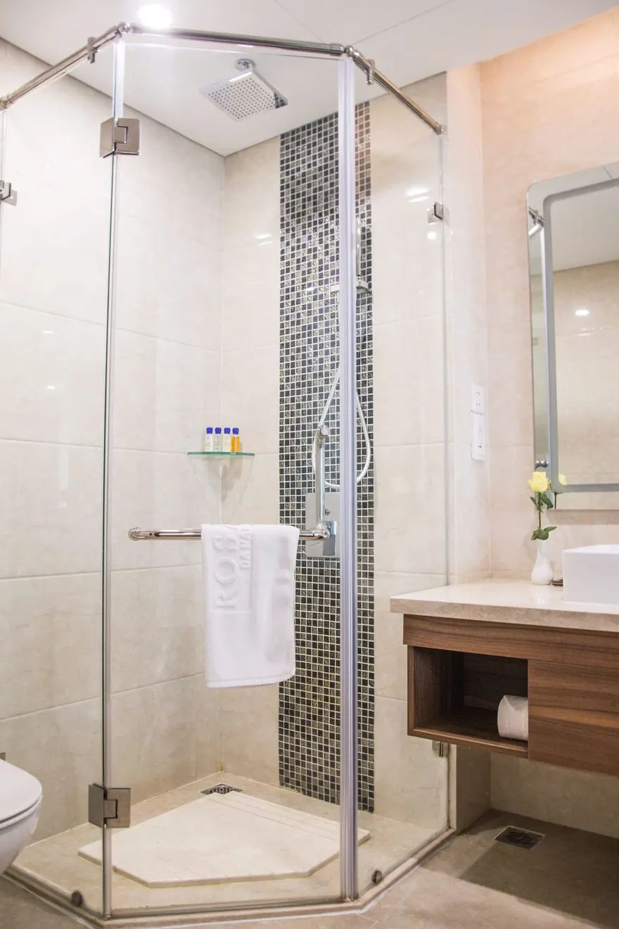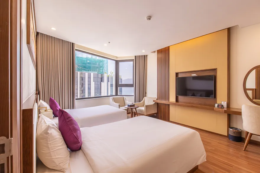 Khách sạn Rosamia Đà Nẵng hiện lên như một biểu tượng nghỉ dưỡng 5 sao kiêu hãnh tọa lạc trên “dải đất kim cương” Võ Nguyên Giáp, trực diện bãi biển Mỹ Khê – một trong những bờ biển quyến rũ nhất hành tinh. Với quy mô 24 tầng cùng hệ thống hơn 200 phòng nghỉ hiện đại, khách sạn khẳng định vị thế điểm đến hàng đầu bằng sự kết hợp hài hòa giữa tiêu chuẩn quốc tế và lòng hiếu khách đặc trưng của người Việt. Ngôn ngữ kiến trúc tại đây theo đuổi phong cách tối giản tinh tế, ưu tiên sử dụng hệ thống kính cường lực lớn để tận dụng tối đa ánh sáng tự nhiên và mở rộng tầm nhìn hướng đại dương bao la, mang lại trải nghiệm thị giác ấn tượng cho du khách ngay từ bên trong phòng ngủ.