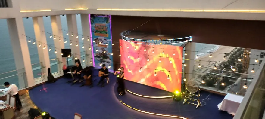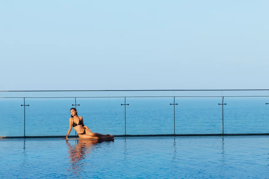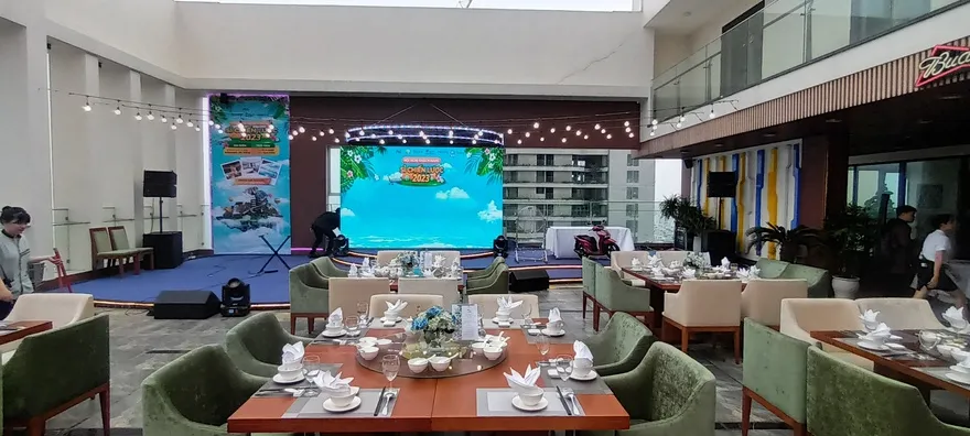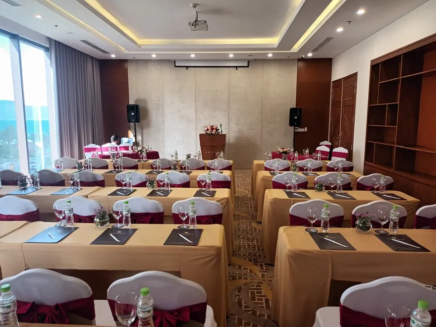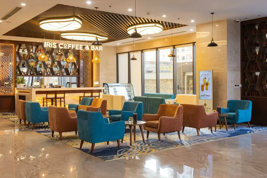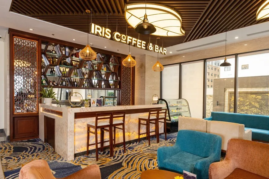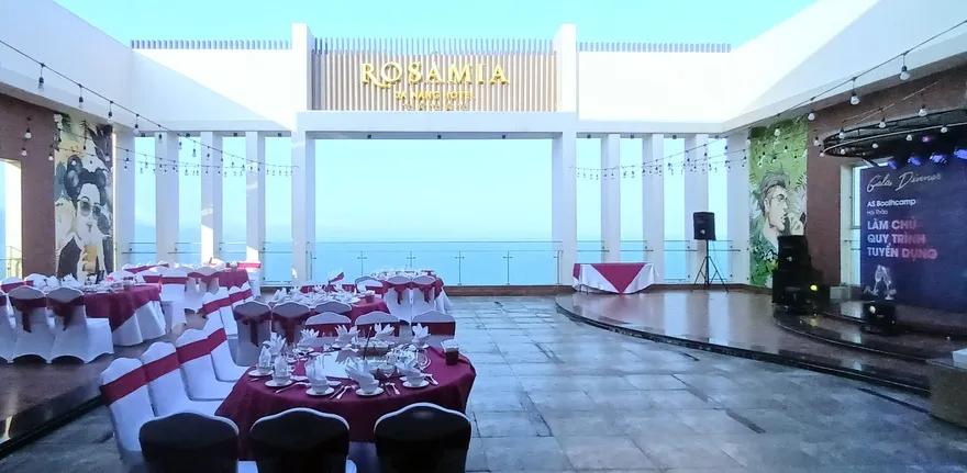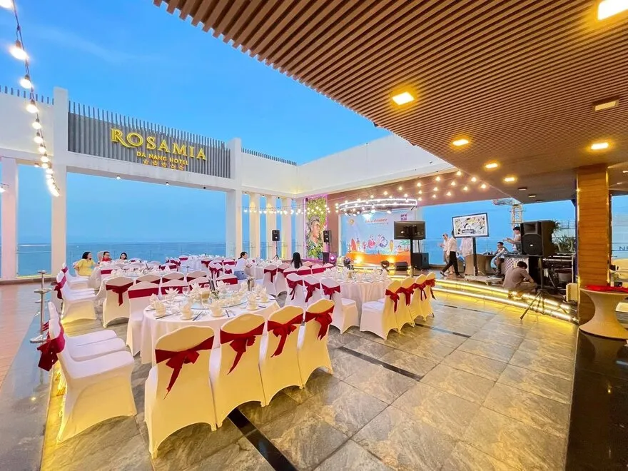 Hành trình trải nghiệm tại Rosamia còn được làm phong phú bởi hệ thống ẩm thực và dịch vụ bar đa dạng, phục vụ mọi nhu cầu từ những bữa ăn nhanh đến các bữa tiệc tối sang trọng. Tại tầng 4, nhà hàng Marina với sức chứa 220 khách là không gian ẩm thực chính chuyên phục vụ buffet sáng phong phú và hải sản tươi sống địa phương trong không gian mở hướng biển. Trong khi đó, Ocean Sky Bar & Restaurant tại tầng 24 mang đến trải nghiệm thượng lưu với tầm nhìn 360 độ ôm trọn đại dương và thành phố, nơi du khách có thể thưởng thức cocktail sáng tạo và các món nướng đặc sắc trong không khí sôi động của âm nhạc. Các tiện ích khác như Poolside Bar tại tầng 6 hay Iris Bar tại sảnh chờ cũng góp phần tạo nên những không gian gặp gỡ và thư giãn chuyên nghiệp cho cả khách nghỉ dưỡng lẫn đối tác kinh doanh.
