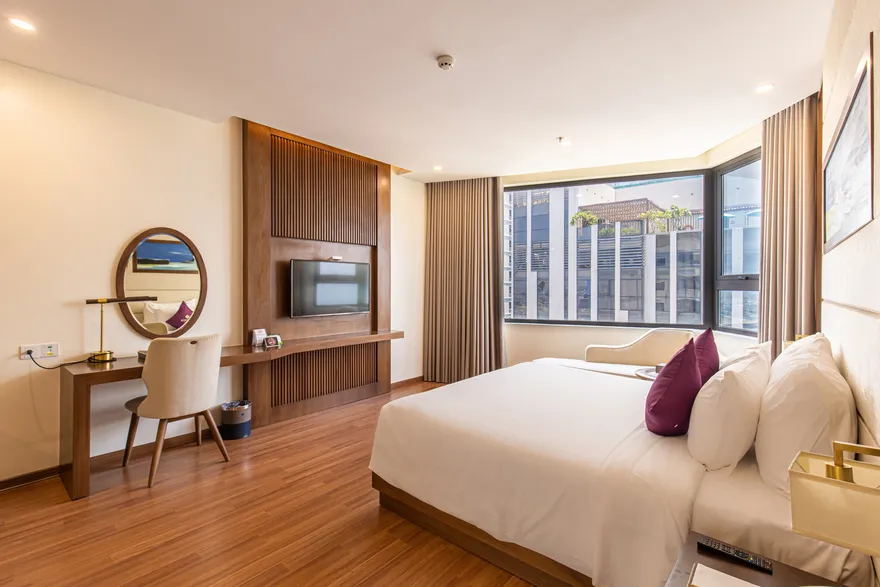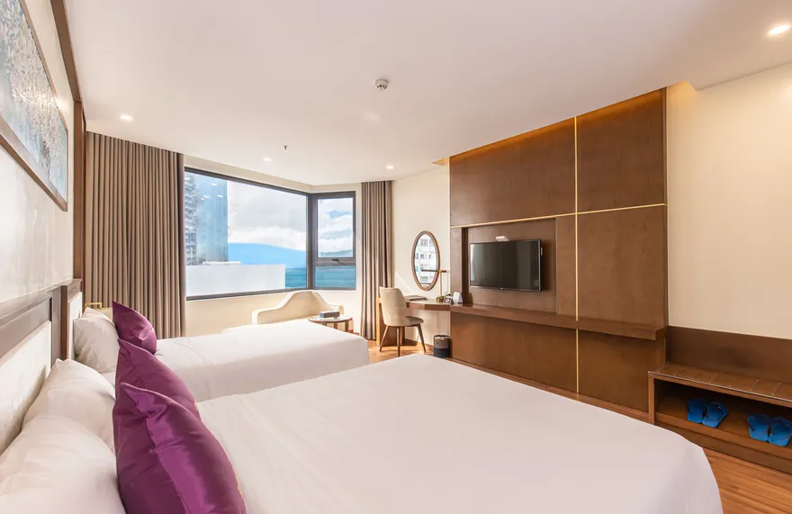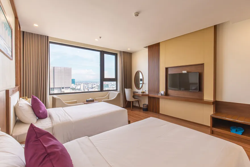 Hoàn toàn có thể. Với vị trí tòa nhà cao 24 tầng và các hạng phòng Premier Ocean Front hoặc Executive Suite, du khách có tầm nhìn thoáng đãng về phía sông Hàn và trung tâm thành phố. Khách sạn có áp dụng mức phụ thu 500.000 VNĐ/đêm trong giai đoạn này và yêu cầu số đêm ở tối thiểu sẽ được cập nhật theo lịch thi đấu chính thức.
