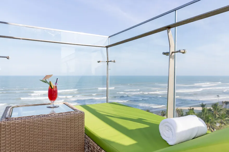 Bãi biển Mỹ Khê: Nằm ngay trực diện khách sạn, chỉ cách chưa đầy 0.1 km (khoảng 1 phút đi bộ). Đây là bãi biển được bình chọn trong top quyến rũ nhất hành tinh, nơi tập trung nhiều hoạt động thể thao biển sôi động.