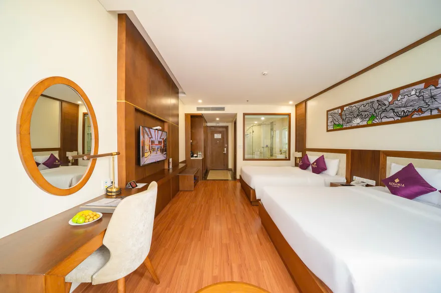 Bạn có hai lựa chọn tối ưu tại Rosamia:Hạng phòng Connecting: Khách sạn có các cặp phòng thông nhau như Connecting Premier (Triple + Triple) có thể chứa tối đa 6 người lớn mà vẫn đảm bảo sự kết nối thông qua cửa nội bộ.Family Suite City View: Một căn hộ rộng 84 $m^2$ với 2 phòng ngủ riêng biệt và 1 phòng khách chung, rất phù hợp cho gia đình đông thành viên.