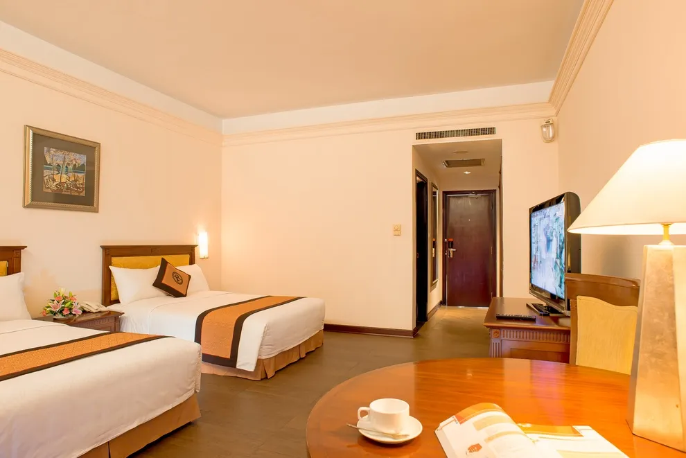 • Phòng nghỉ được trang bị đầy đủ: TV, Wifi, ấm siêu tốc, bồn tắm, két sắt, bàn là