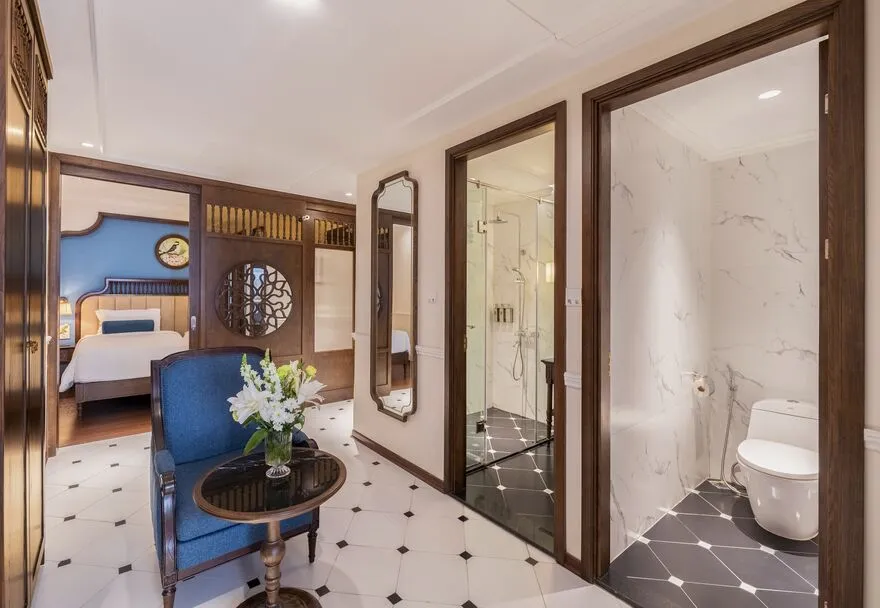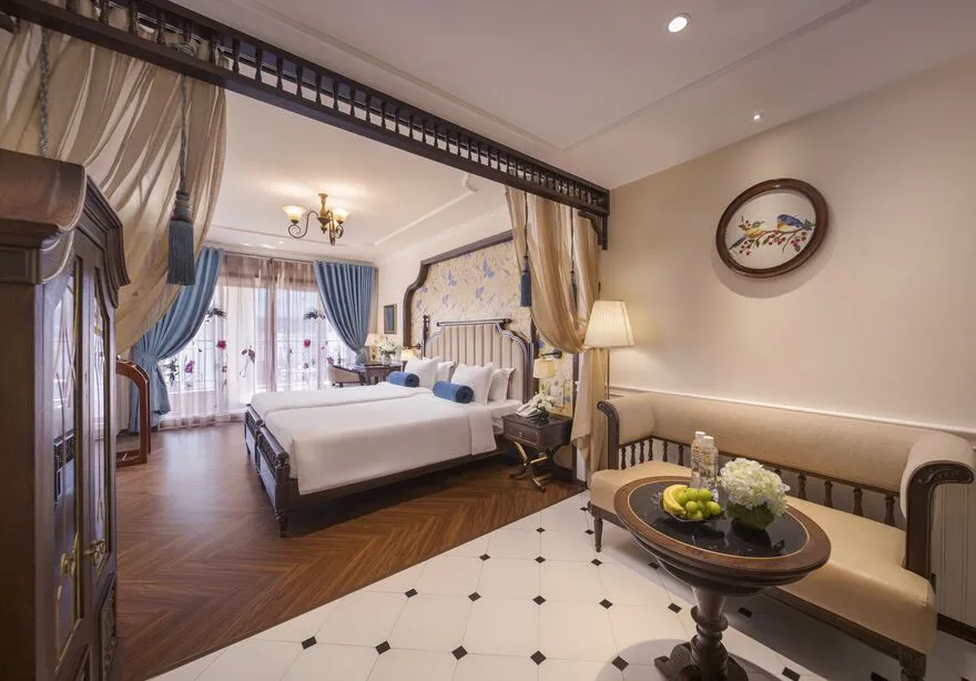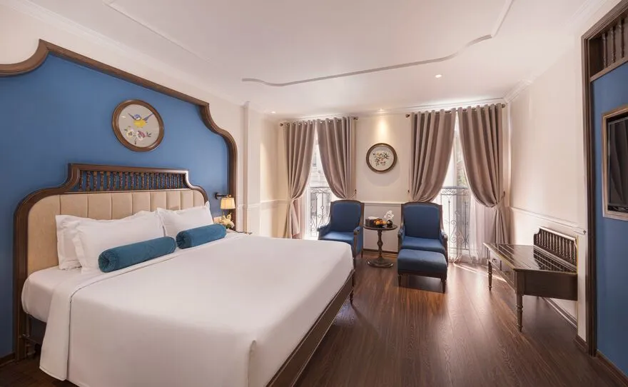 Hệ thống 90 phòng nghỉ tại đây được chia thành nhiều hạng phòng đa dạng như Deluxe, Executive Balcony, Junior Suite, Tirant Suite và Family Room để phục vụ mọi đối tượng khách hàng. Các hạng phòng cao cấp như Executive Balcony sở hữu ban công riêng hướng phố, trong khi các dòng Suite cung cấp đặc quyền trà chiều và tầm nhìn bao quát Hồ Hoàn Kiếm. Đặc biệt, phòng Family là giải pháp không gian thông minh với cửa ngăn cách riêng tư, đáp ứng tốt nhu cầu của các gia đình hoặc nhóm bạn lớn. Tất cả các phòng đều được trang bị đầy đủ tiện nghi hiện đại từ TV LCD, Wi-Fi tốc độ cao đến các vật dụng cá nhân tinh tế như áo choàng tắm Yukata.