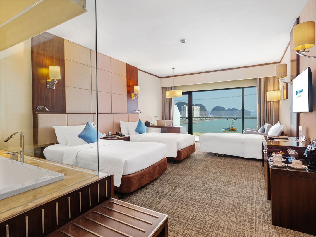 Vị trí và Tầm nhìn đắc địa Khách sạn Wyndham Legend Halong tọa lạc tại vị trí lý tưởng trên đường Hạ Long, chạy dọc theo bờ biển Bãi Cháy xinh đẹp . Đây là khách sạn 5 sao mang thương hiệu quốc tế đầu tiên tại khu vực Bãi Cháy, sở hữu tầm nhìn ngoạn mục hướng ra Vịnh Hạ Long – di sản thiên nhiên thế giới – và cầu Bãi Cháy biểu tượng .