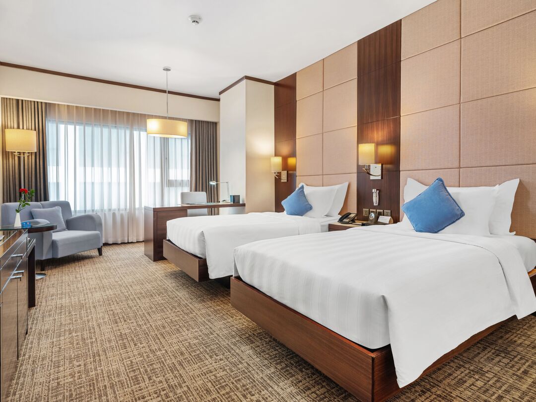Sức chứa tiêu chuẩn: Mỗi phòng tối đa 02 người lớn và 02 trẻ em dưới 12 tuổi (ngoại trừ phòng Family Suite tối đa 04 người lớn và 02 trẻ em) .