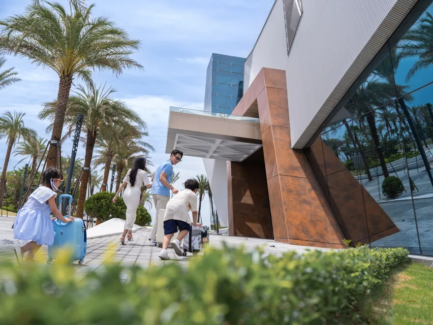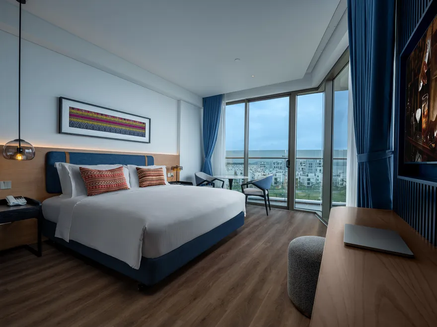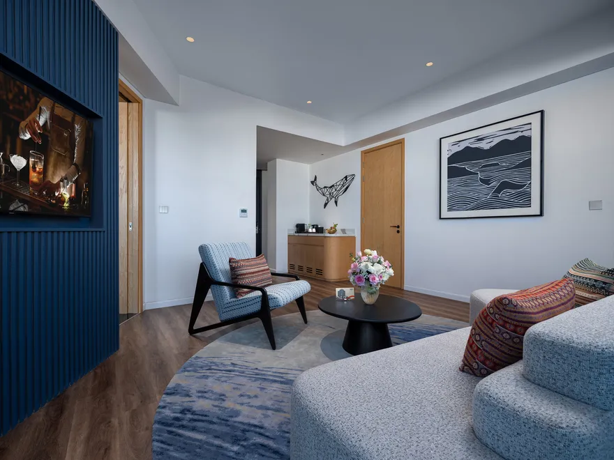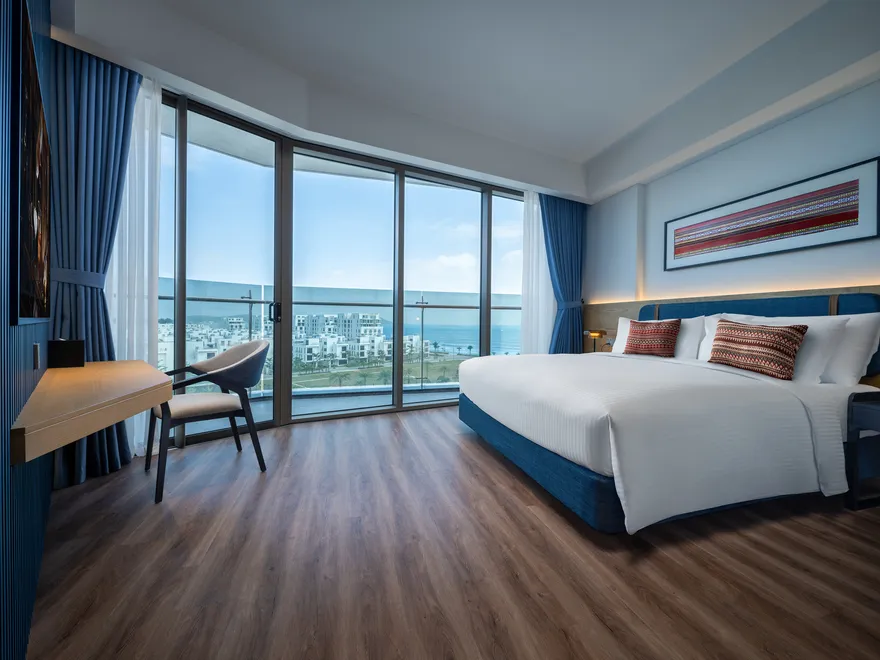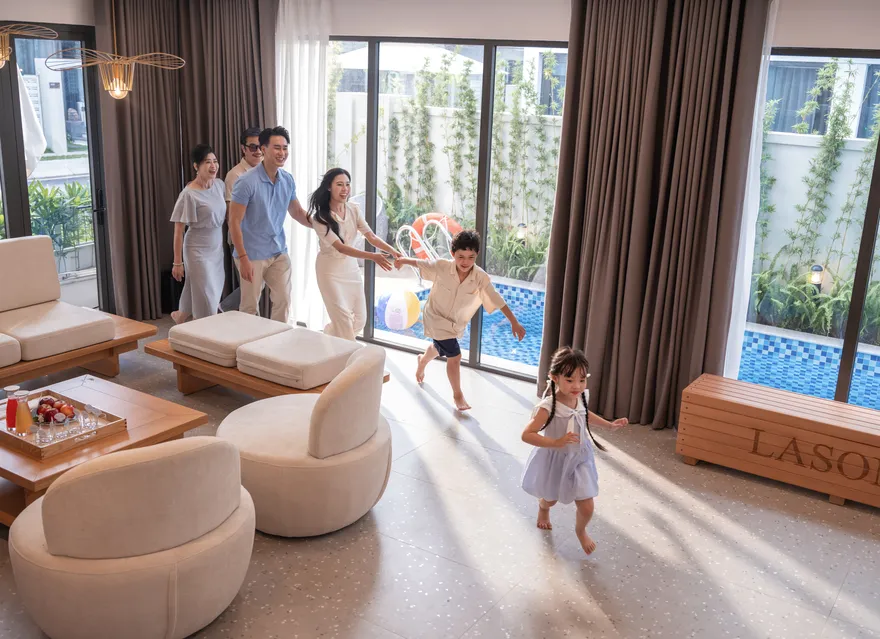 Hệ thống lưu trú tại đây rất đa dạng, bao gồm hai tòa khách sạn và phân khu biệt thự biệt lập. Phân khu Ocean Vista đang vận hành với 68 phòng khách sạn boutique, từ các hạng phòng Deluxe dành cho cặp đôi đến Family Suite rộng 50 $m^2$ được thiết kế thông minh với giường tầng cho nhóm 6 người lớn, và Premier Suite hướng biển sang trọng. Trong khi đó, tháp Sky Vista dự kiến khai trương vào năm 2026 sẽ cung cấp gần 200 tác phẩm phòng nghỉ và suite độc đáo, tập trung sâu vào các tiện ích chăm sóc sức khỏe. Riêng khu Lasong Villa sở hữu 20 căn biệt thự 6 phòng ngủ với diện tích 320 $m^2$, có bể bơi riêng sâu 1,15m và sân vườn rộng rãi để tổ chức tiệc BBQ.