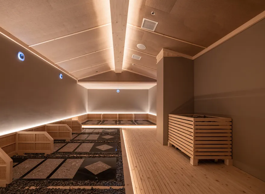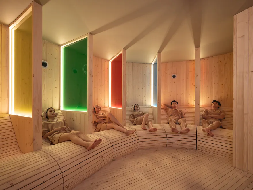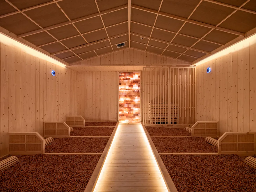 Hành trình nhiệt trị liệu tại đây sở hữu 9 phòng xông hơi với công dụng riêng biệt, bao gồm: phòng Đá Ganbanyoku Nhật Bản, phòng Đất sét hoàng thổ, phòng Đá muối Himalaya, Hang hồng ngoại, Phòng sắc màu, Phòng tuyết (Phòng lạnh), và Phòng Oxy Hinoki.