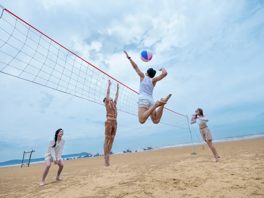 • Sân chơi Team Building: Khu vực bãi biển rộng rãi trước khách sạn là nơi lý tưởng để tổ chức các hoạt động gắn kết và trò chơi tập thể.