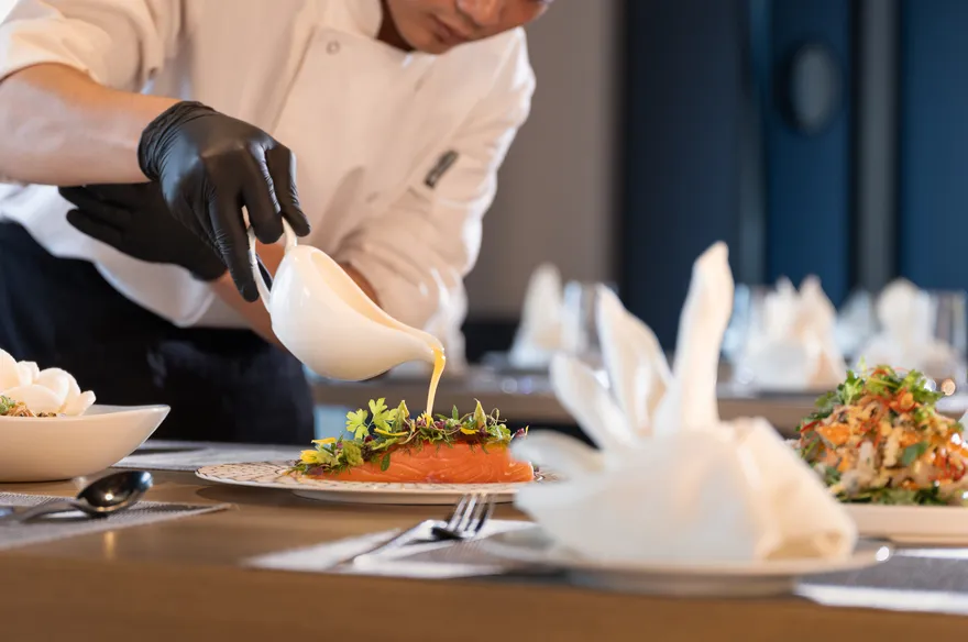 Hành trình ẩm thực tại Lasong cũng vô cùng đặc sắc với sự góp mặt của nhiều không gian đa phong cách. Nhà hàng Cá Cơm tại Ocean Vista gợi nhớ đến hơi thở làng chài ấm cúng, chuyên phục vụ hải sản tươi sống và đặc sản xứ Thanh. The Deck Sầm Sơn tại Sky Vista lại mang phong cách hiện đại với tầm nhìn panorama hướng biển. Du khách cũng có thể tìm thấy những giây phút thư thái tại La Cà Lounge ở sảnh khách sạn hoặc thưởng thức những ly cocktail sáng tạo tại U-Bar khi hoàng hôn buông xuống.