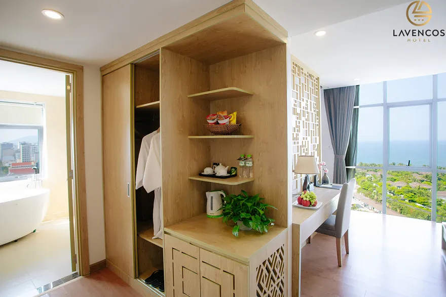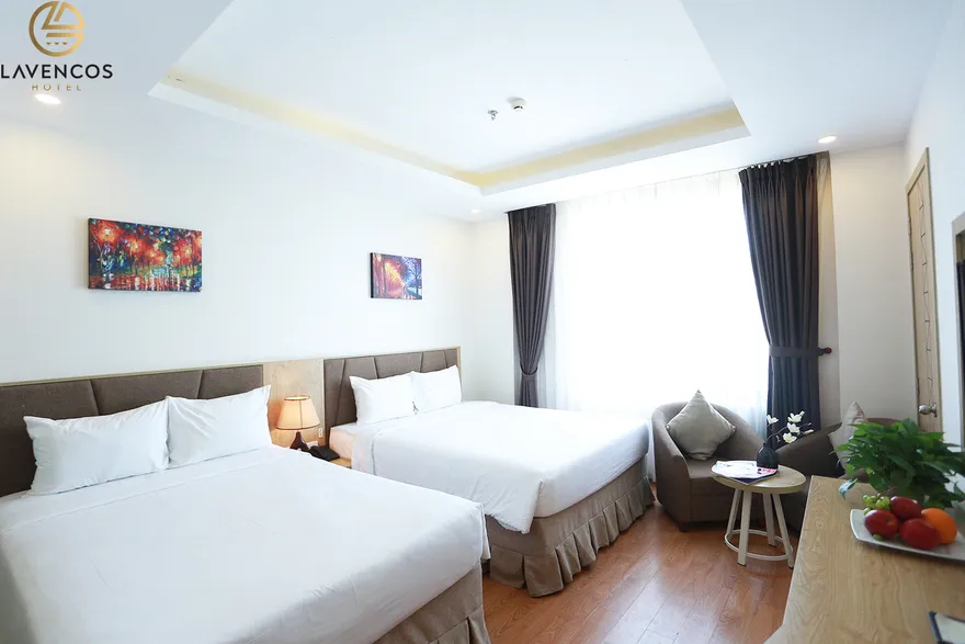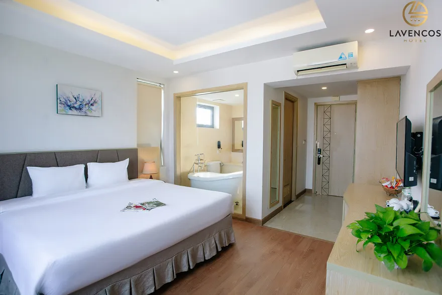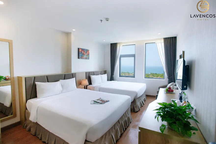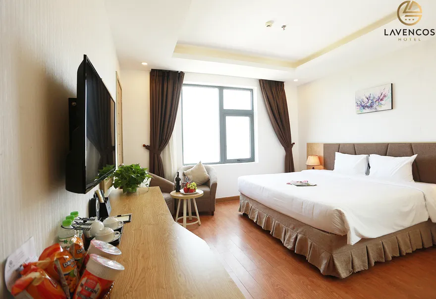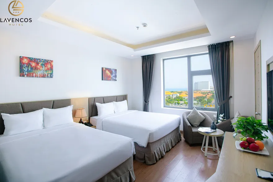 Hệ thống 71 phòng nghỉ tại Lavencos được thiết kế dựa trên nguyên lý cân bằng giữa công năng và thẩm mỹ, sử dụng vật liệu cách âm tốt để đảm bảo giấc ngủ trọn vẹn. Mỗi không gian lưu trú đều được trang bị tiện ích công nghệ cao như Smart TV 45 inch, hệ thống Wi-Fi tốc độ trên 500 Mbps và phòng tắm hiện đại với vòi sen kiểu thác nước. Khách hàng có thể lựa chọn hạng Superior (30-32m²) tối ưu cho công vụ, hạng Deluxe (30m²) với tầm nhìn trực diện biển hoặc phố, hay hạng Deluxe Honey được thiết kế lãng mạn với giường Super King dành riêng cho các cặp đôi. Đáng chú ý, trong giai đoạn 2026, khách sạn bổ sung thêm hạng Family 2-bedroom (32m²) ấm cúng cho gia đình và nâng cấp hạng Premier Suite Ocean View lên diện tích 65m² với tầm nhìn đại dương không giới hạn.
