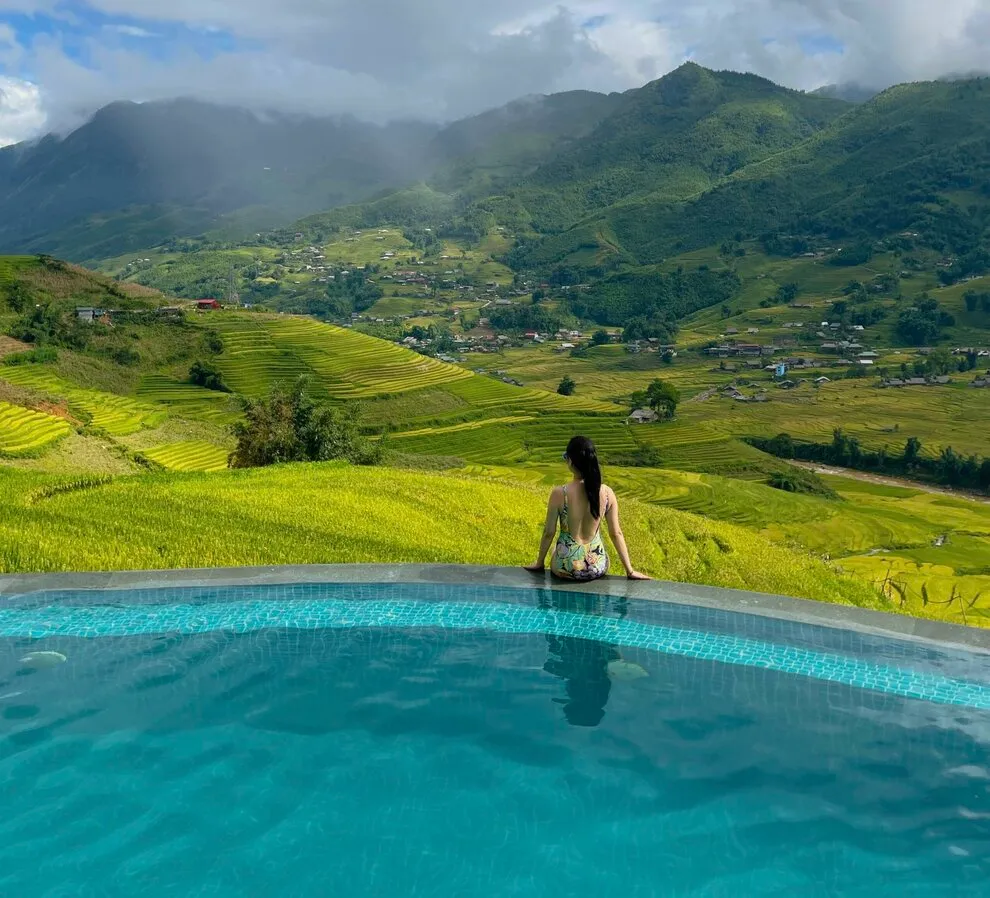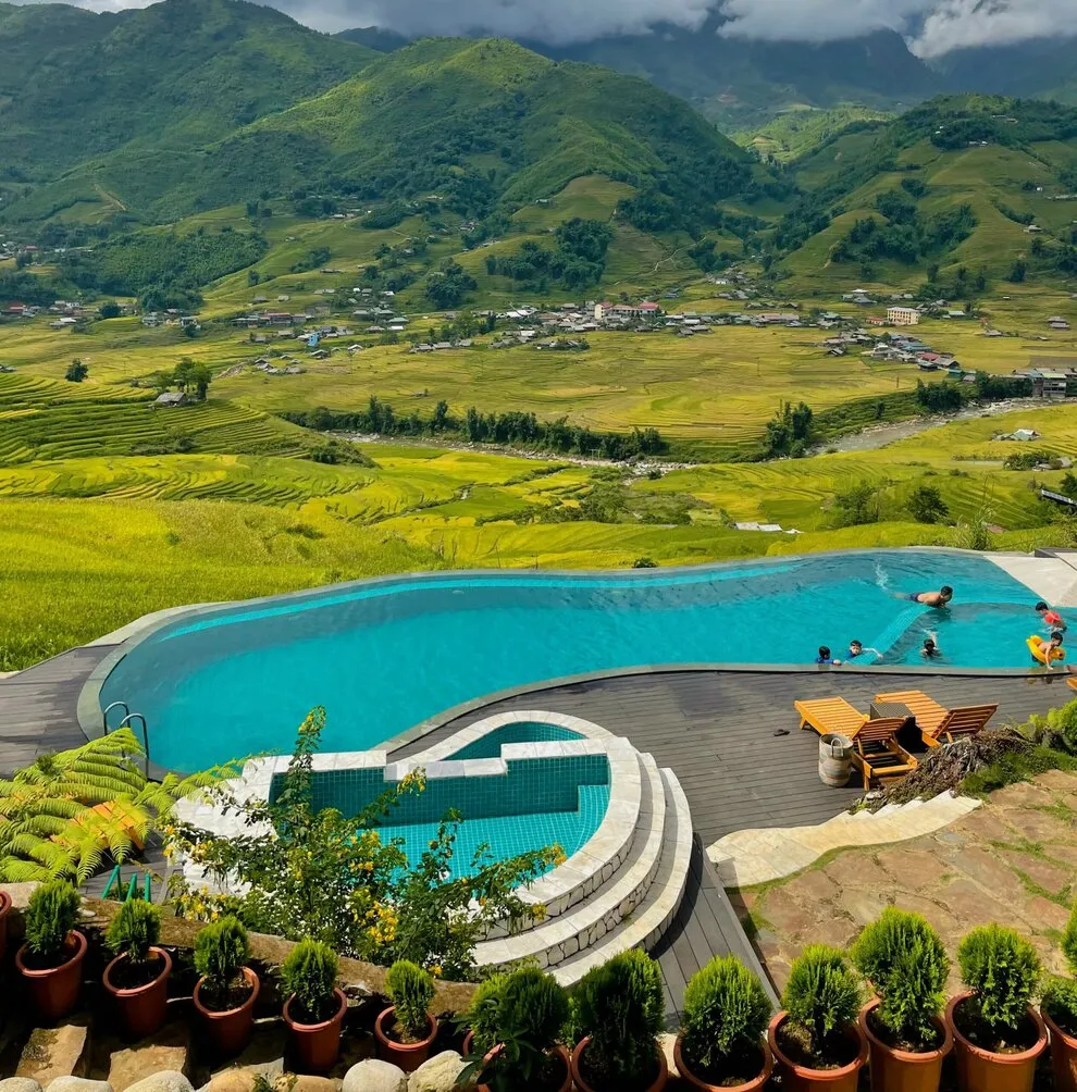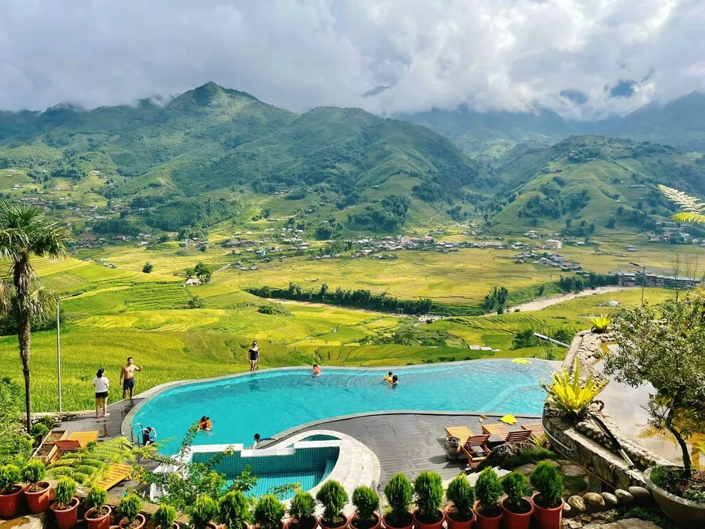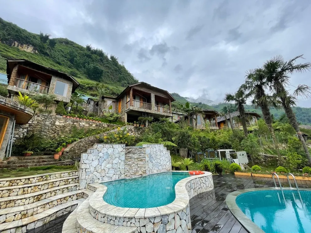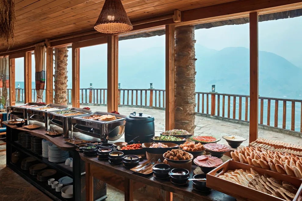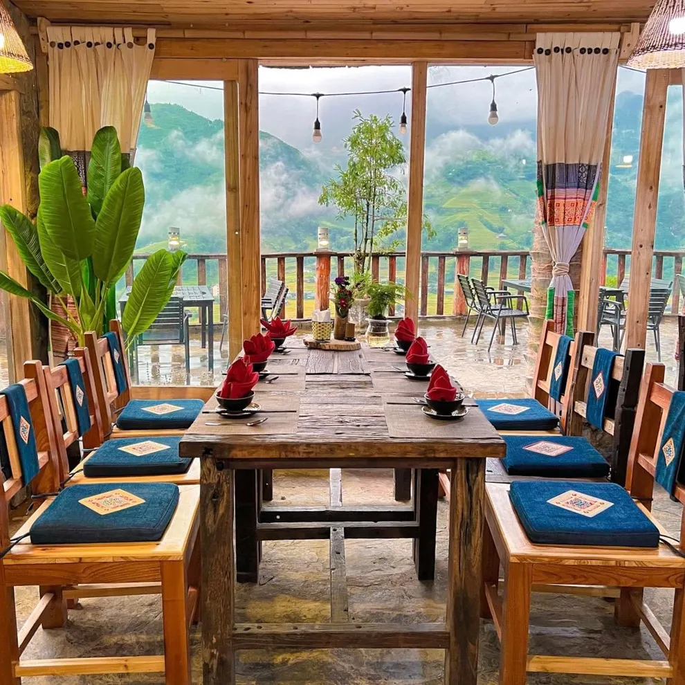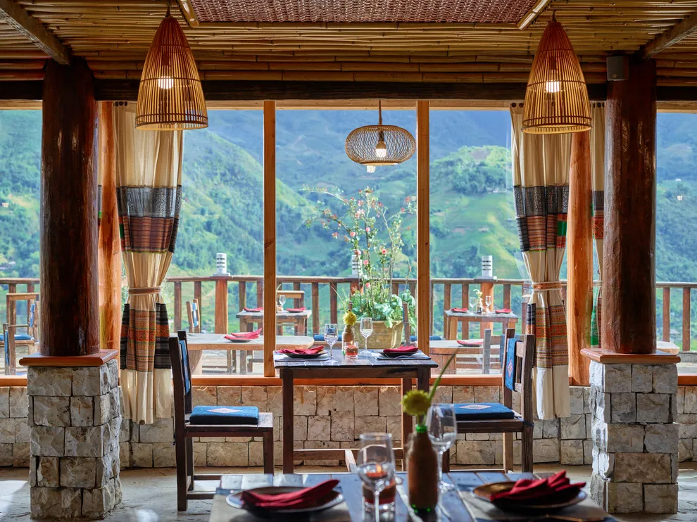 Hành trình trải nghiệm tại đây còn ghi dấu ấn bởi tinh hoa ẩm thực tại nhà hàng Mường Hoa, nơi áp dụng triết lý “Farm-to-Table” với nguồn nguyên liệu tươi sạch được thu mua trực tiếp từ nông dân địa phương. Thực đơn vô cùng phong phú từ các món đặc sản như gà H’mong nướng mắc khén, cá hồi Bản Khoang đến các bữa tiệc BBQ ngoài trời ấm cúng bên ánh lửa trại. Để phục hồi thể chất, du khách không nên bỏ qua liệu pháp tắm lá thuốc người Dao Đỏ trứ danh tại Pơ Mu Spa hoặc thư giãn tại hồ bơi vô cực sử dụng công nghệ lọc điện phân muối không hóa chất, an toàn tuyệt đối cho làn da.