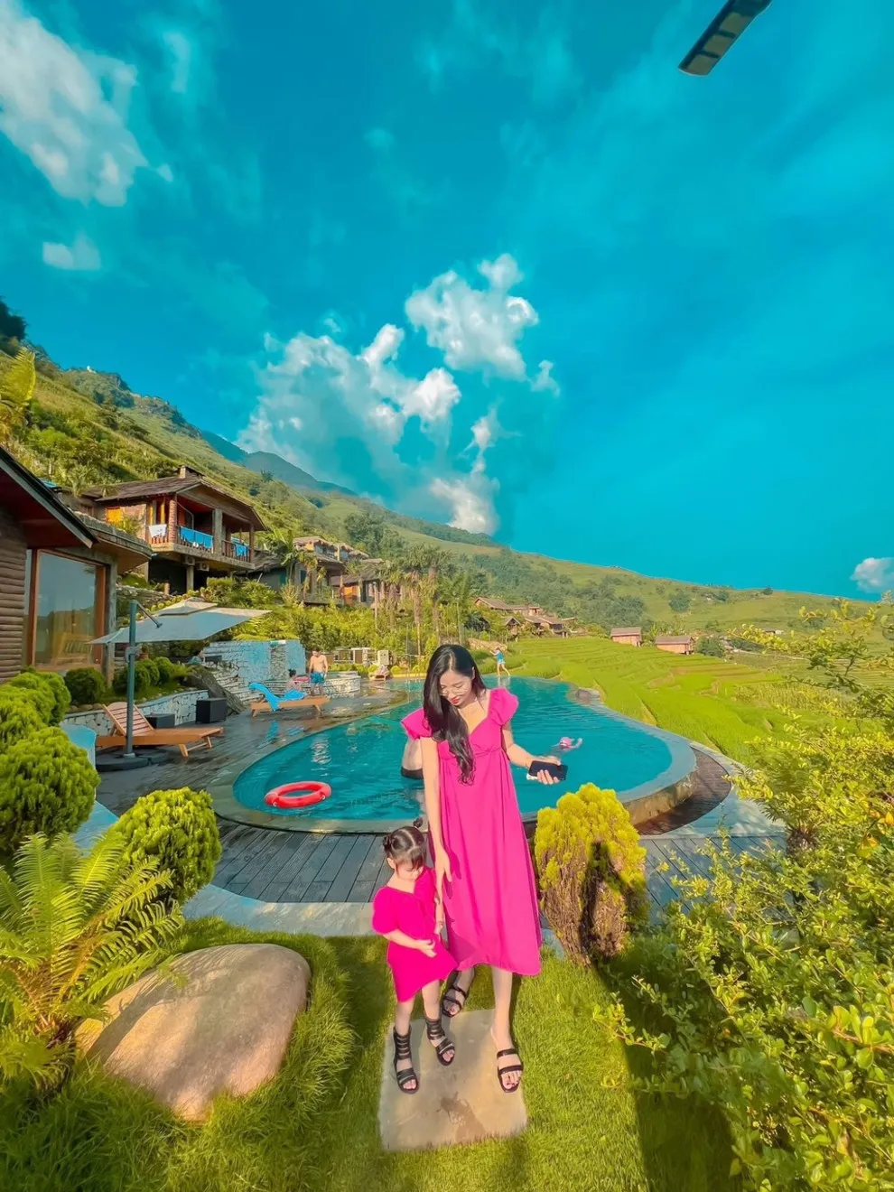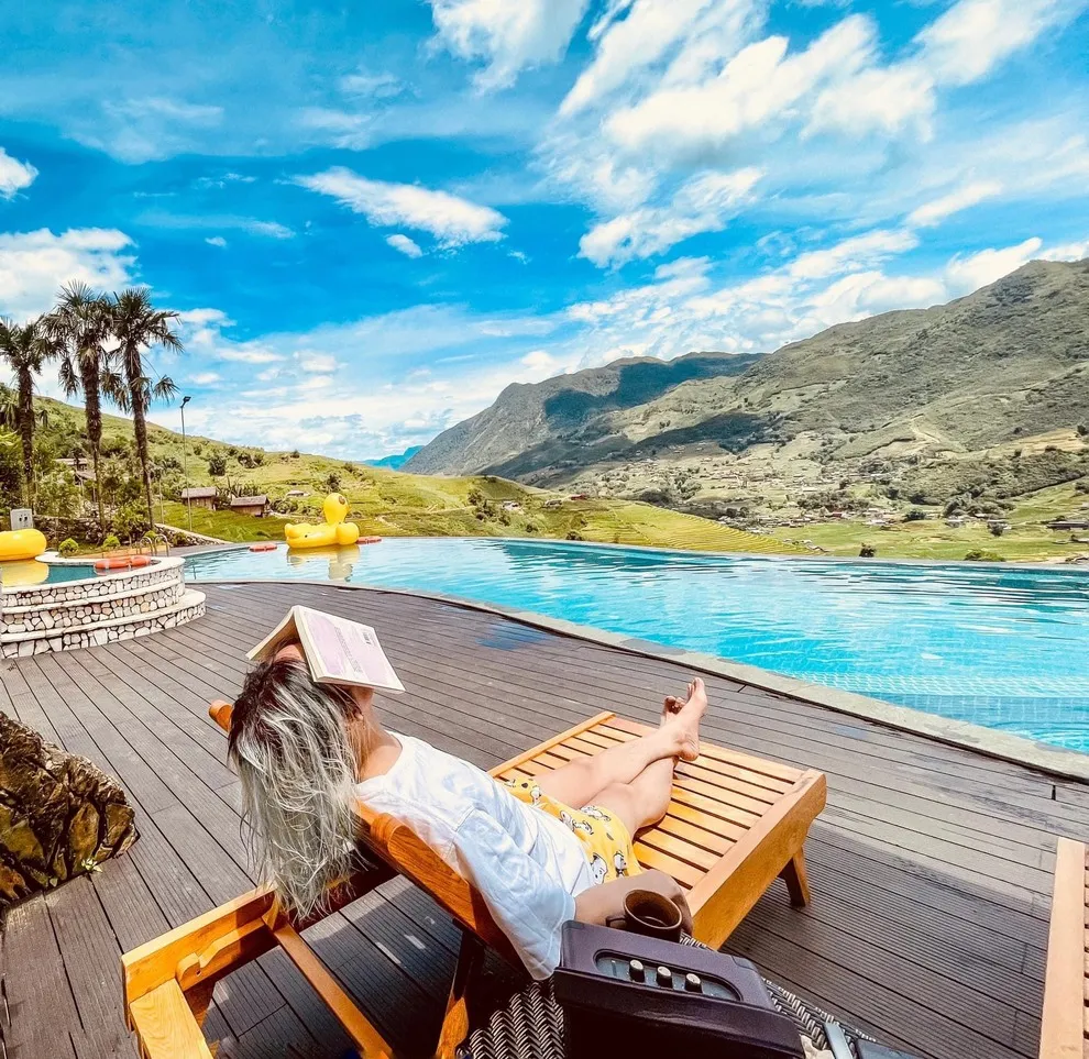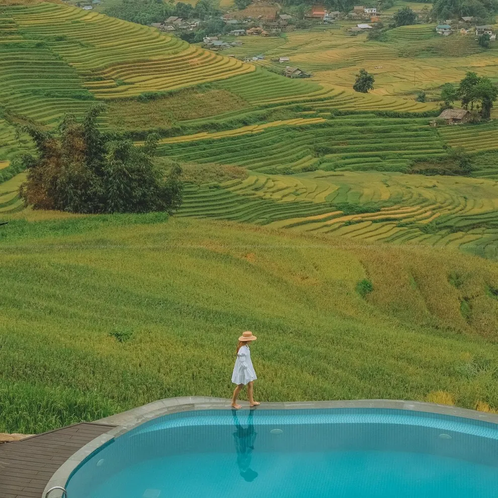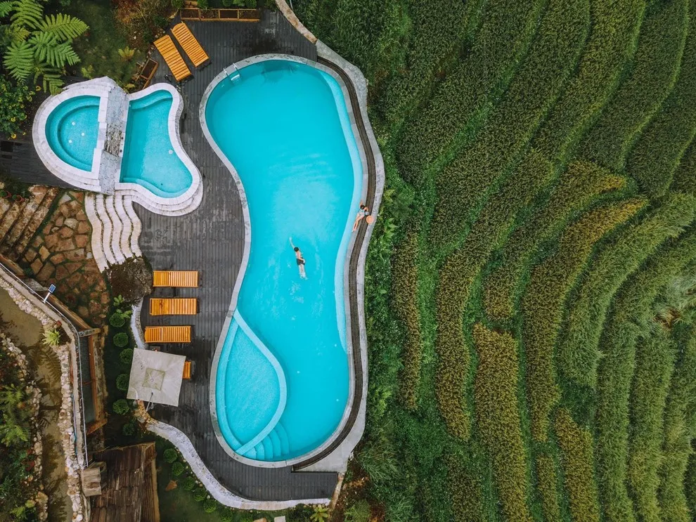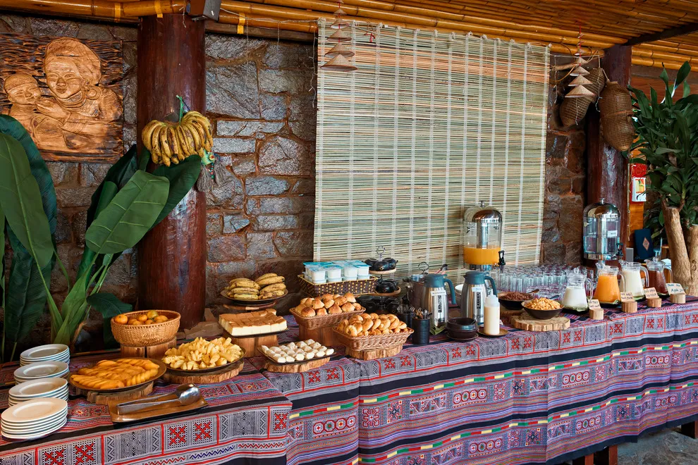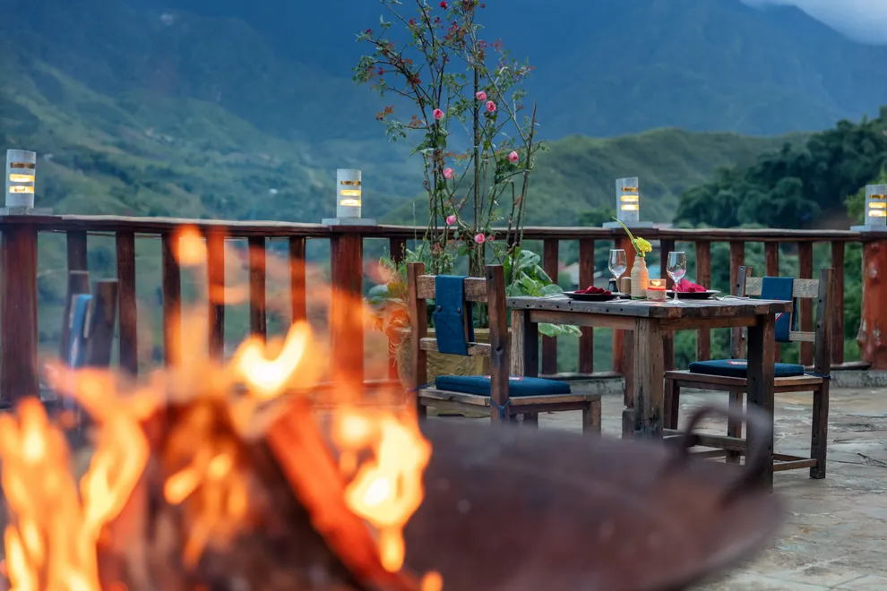 Hành trình trải nghiệm tại đây còn ghi dấu ấn bởi tinh hoa ẩm thực tại nhà hàng Mường Hoa, nơi áp dụng triết lý “Farm-to-Table” với nguồn nguyên liệu tươi sạch được thu mua trực tiếp từ nông dân địa phương. Thực đơn vô cùng phong phú từ các món đặc sản như gà H’mong nướng mắc khén, cá hồi Bản Khoang đến các bữa tiệc BBQ ngoài trời ấm cúng bên ánh lửa trại. Để phục hồi thể chất, du khách không nên bỏ qua liệu pháp tắm lá thuốc người Dao Đỏ trứ danh tại Pơ Mu Spa hoặc thư giãn tại hồ bơi vô cực sử dụng công nghệ lọc điện phân muối không hóa chất, an toàn tuyệt đối cho làn da.