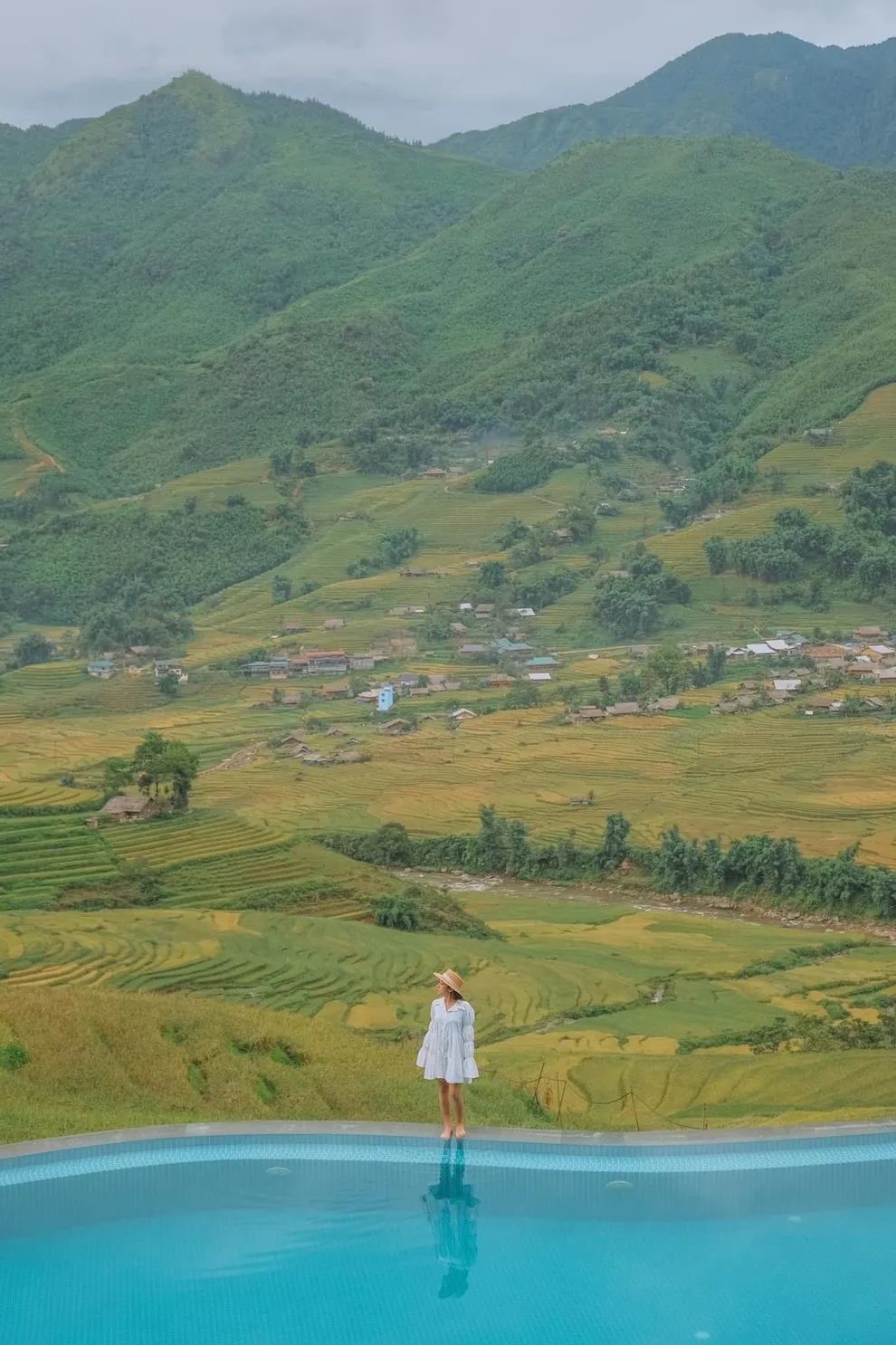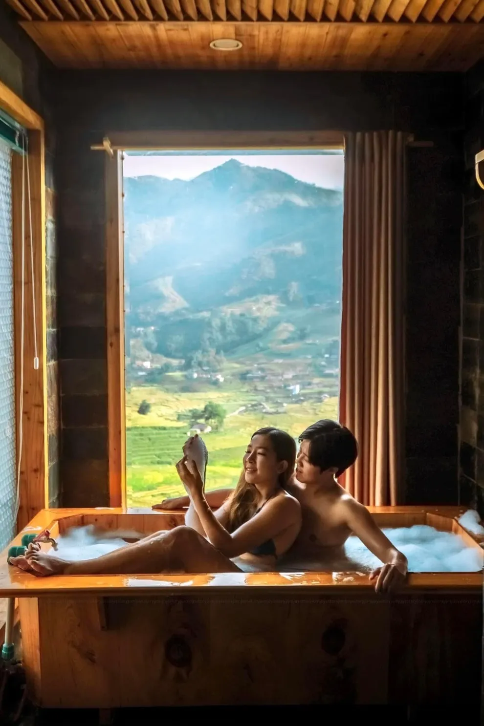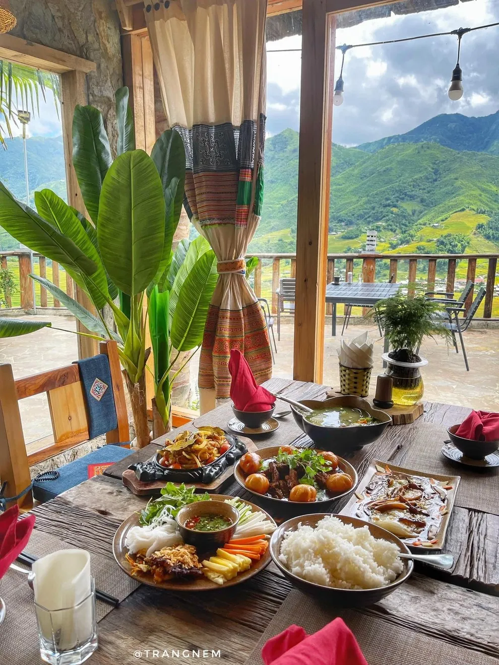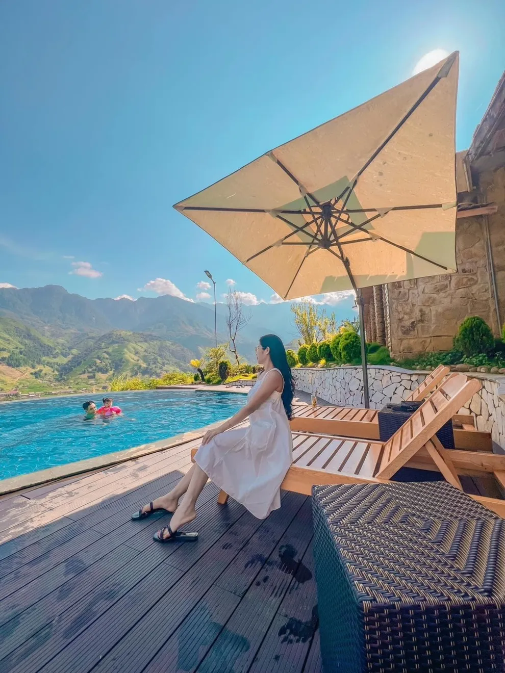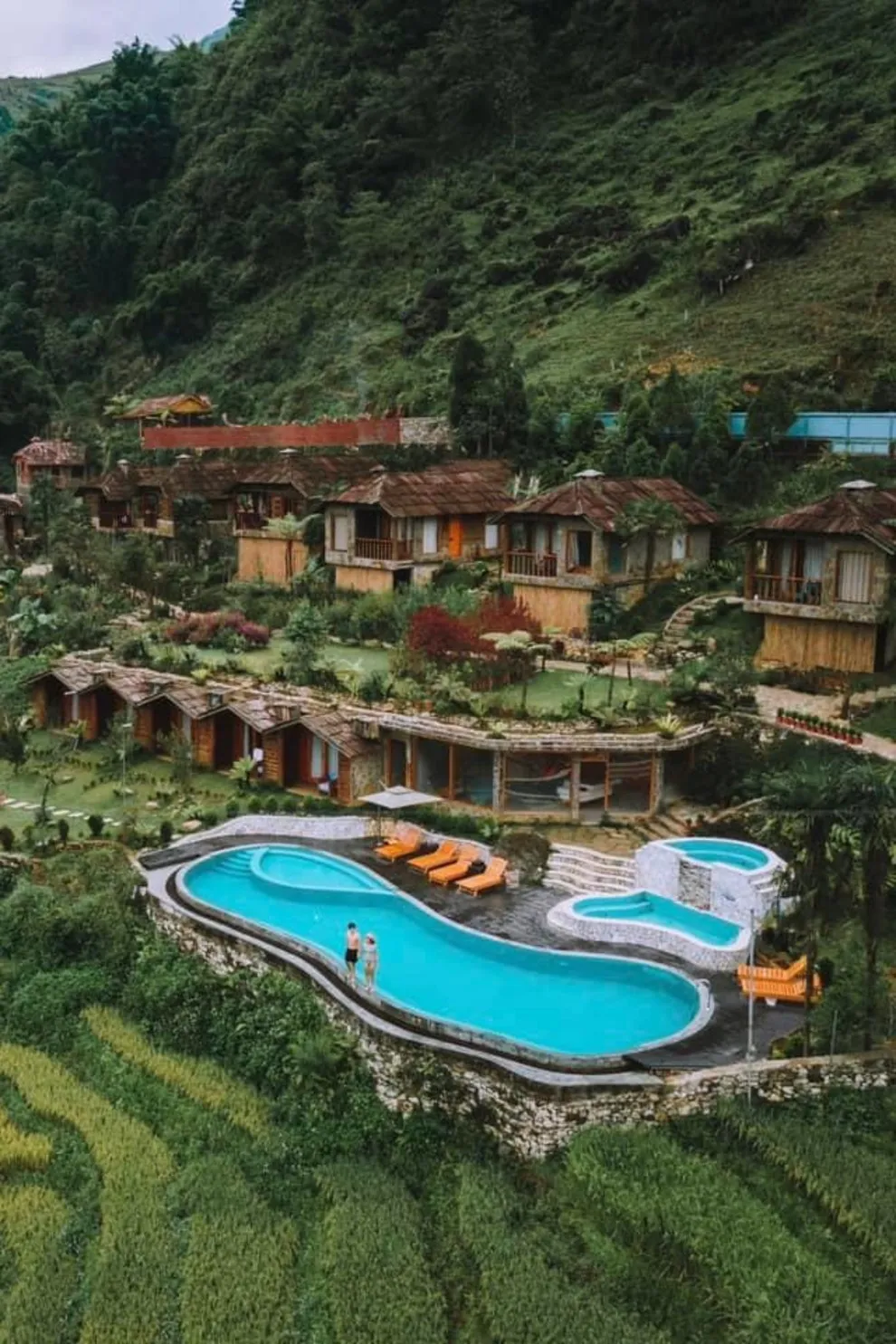 Hành trình trải nghiệm tại đây còn ghi dấu ấn bởi tinh hoa ẩm thực tại nhà hàng Mường Hoa, nơi áp dụng triết lý “Farm-to-Table” với nguồn nguyên liệu tươi sạch được thu mua trực tiếp từ nông dân địa phương. Thực đơn vô cùng phong phú từ các món đặc sản như gà H’mong nướng mắc khén, cá hồi Bản Khoang đến các bữa tiệc BBQ ngoài trời ấm cúng bên ánh lửa trại. Để phục hồi thể chất, du khách không nên bỏ qua liệu pháp tắm lá thuốc người Dao Đỏ trứ danh tại Pơ Mu Spa hoặc thư giãn tại hồ bơi vô cực sử dụng công nghệ lọc điện phân muối không hóa chất, an toàn tuyệt đối cho làn da.