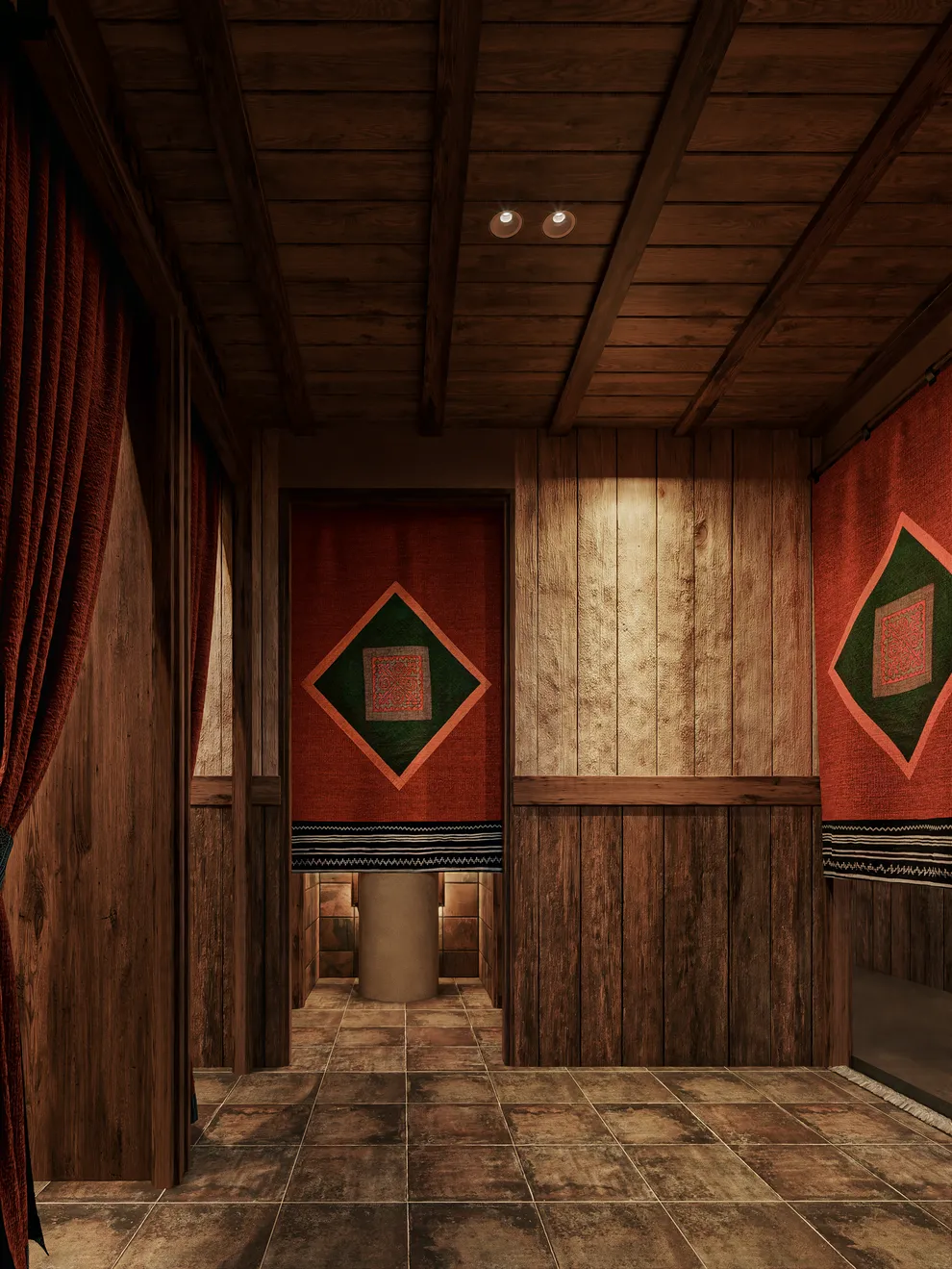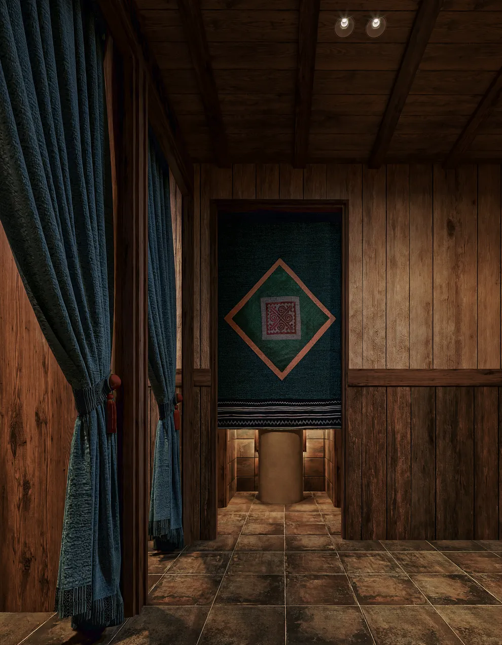 Thiết kế tường bằng đất sét và đá tự nhiên cũng giúp điều hòa nhiệt độ, giữ ấm tốt vào mùa đông.