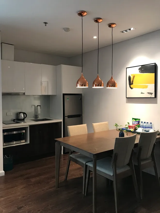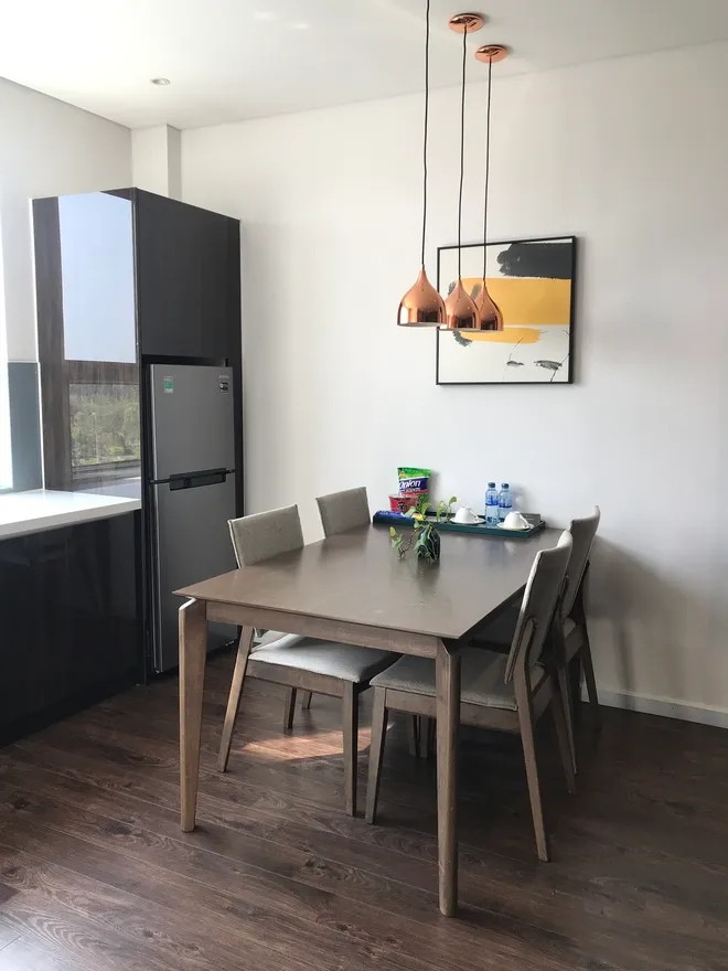 • Căn hộ đầy đủ tiện nghi với bếp, tủ lạnh lớn và khu tiếp khách.
