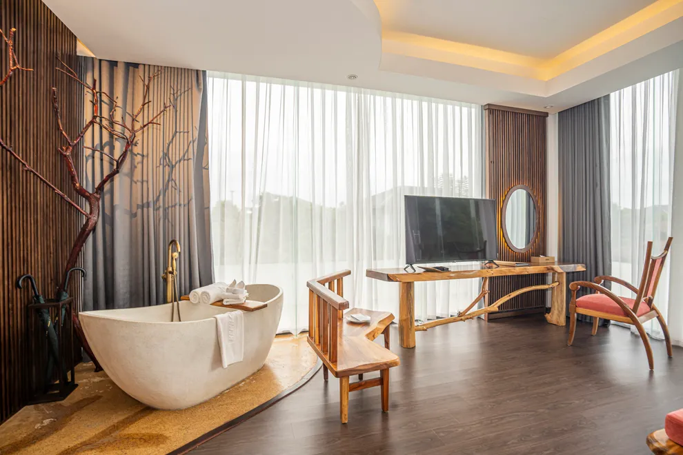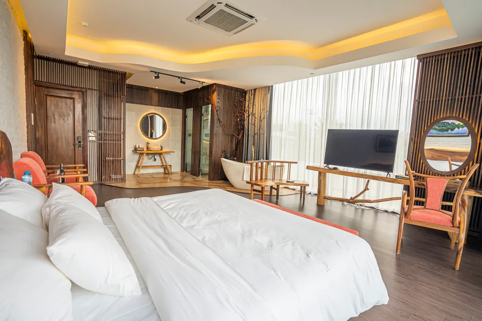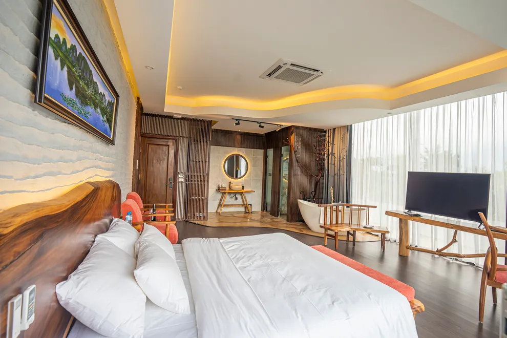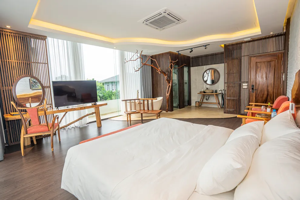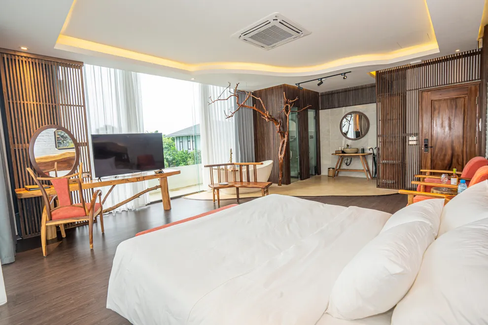 Hệ thống lưu trú cập nhật cho năm 2026 vô cùng đa dạng, đáp ứng mọi nhu cầu từ nghỉ dưỡng cá nhân đến khách đoàn. Các hạng phòng Hotel tiêu chuẩn như Deluxe, Superior và Triple đều được thiết kế tinh tế với bồn tắm khoáng tại phòng, trong khi hạng Junior Suite và Suite ưu tiên không gian mở rộng rãi cho trải nghiệm Onsen riêng tư. Đối với những lựa chọn biệt lập, Villa Hill tọa lạc trên đỉnh núi với 120 bậc thang mang đến đặc quyền có quản gia và du thuyền riêng. Ngoài ra, Royal Suite gây ấn tượng với phòng xông hơi thảo dược và bàn Bi-a ngay tại phòng. Dự án cũng đang tích cực triển khai các phân khu biệt thự mới mang phong cách Địa Trung Hải, Nhật Bản và làng cổ Bắc Bộ để làm phong phú thêm trải nghiệm của khách hàng.