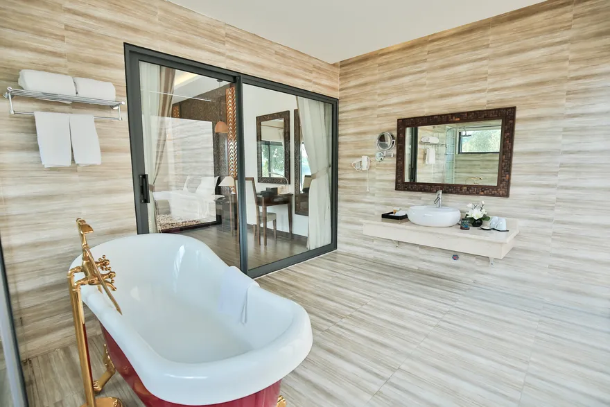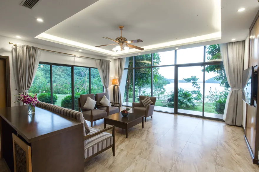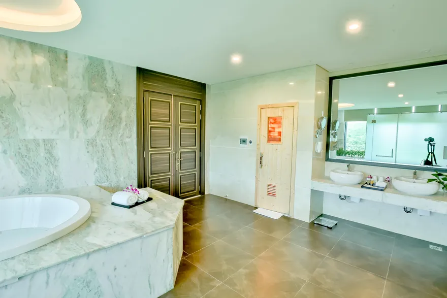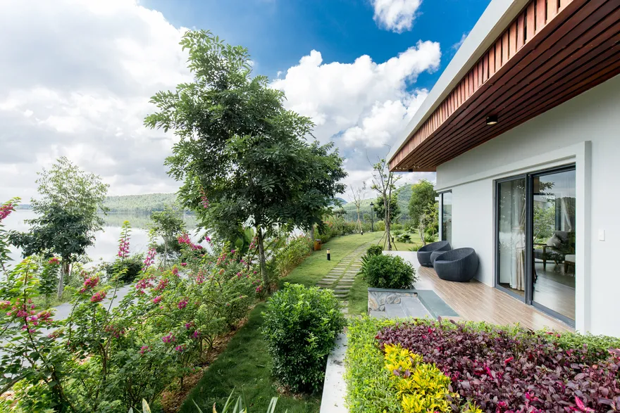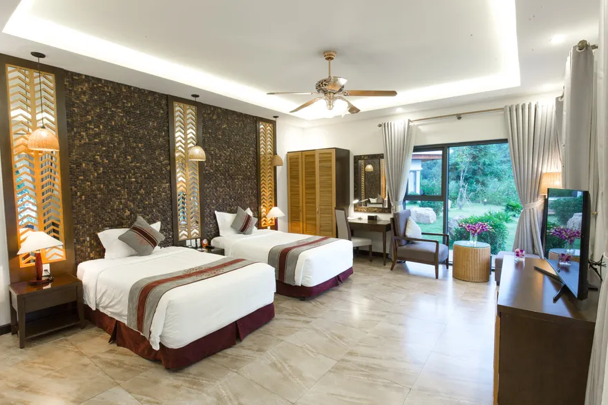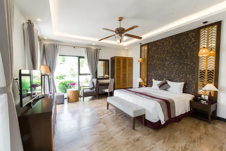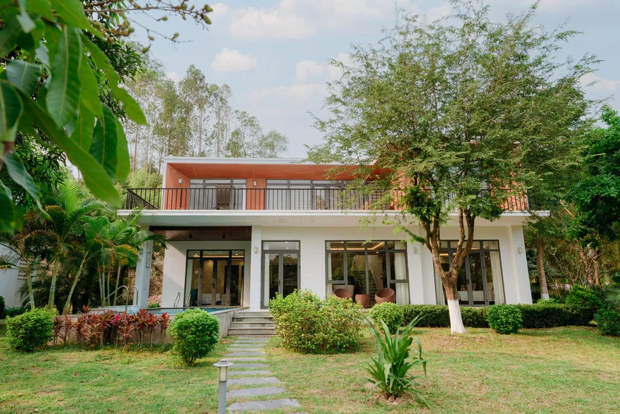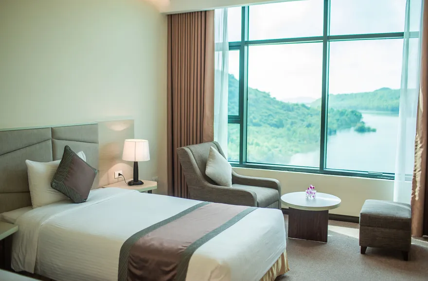 Hệ thống lưu trú tại đây là sự kết hợp hoàn hảo giữa tiêu chuẩn 5 sao quốc tế và xu hướng kiến trúc xanh bền vững. Với tổng cộng 109 phòng nghỉ hiện đại và hệ thống biệt thự ven hồ sang trọng sử dụng vật liệu độc đáo, du khách sẽ được tận hưởng không gian nghỉ dưỡng tinh tế và riêng tư tuyệt đối. Khối khách sạn cung cấp đa dạng các hạng phòng như Deluxe King, Deluxe Twin, Executive Suite và đặc biệt là phòng Presidential Suite rộng 300 m^2 đẳng cấp. Bên cạnh đó, hệ thống Villa biệt lập bao gồm Deluxe Villa, Grand Villa, Royal Villa, Executive Villa và Premiere Villa với diện tích lên đến 310 m^2, đáp ứng hoàn hảo nhu cầu cho các đại gia đình hoặc đoàn khách đông người.