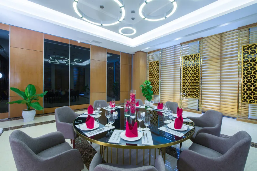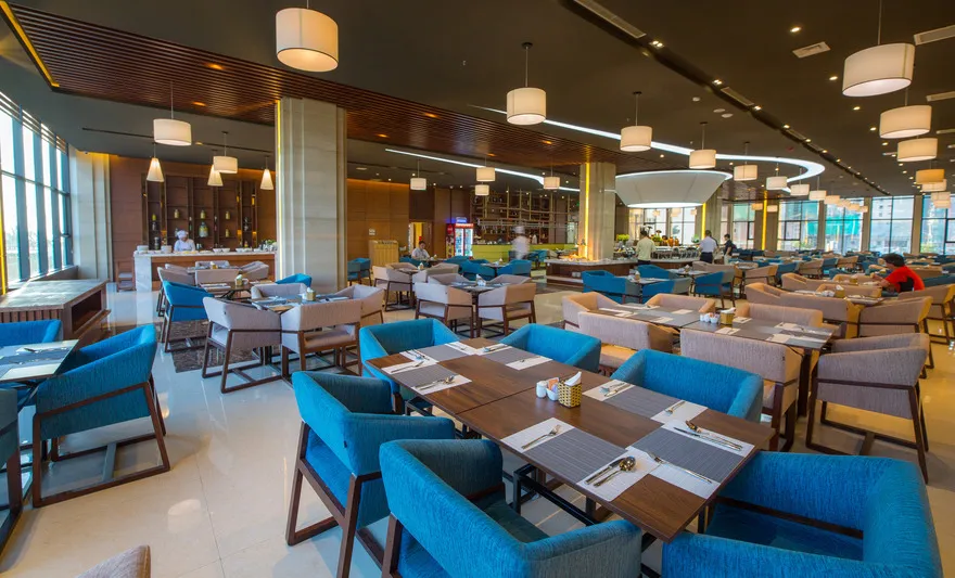 Với hệ thống 6 nhà hàng đa dạng, đội ngũ đầu bếp sẵn sàng phục vụ các yêu cầu về đồ ăn chay hoặc thực đơn ăn kiêng nếu khách hàng thông báo trước. Ngoài ra, khu vực xung quanh khách sạn cũng có các lựa chọn quốc tế như Gujarat Indian Restaurant để thay đổi khẩu vị.