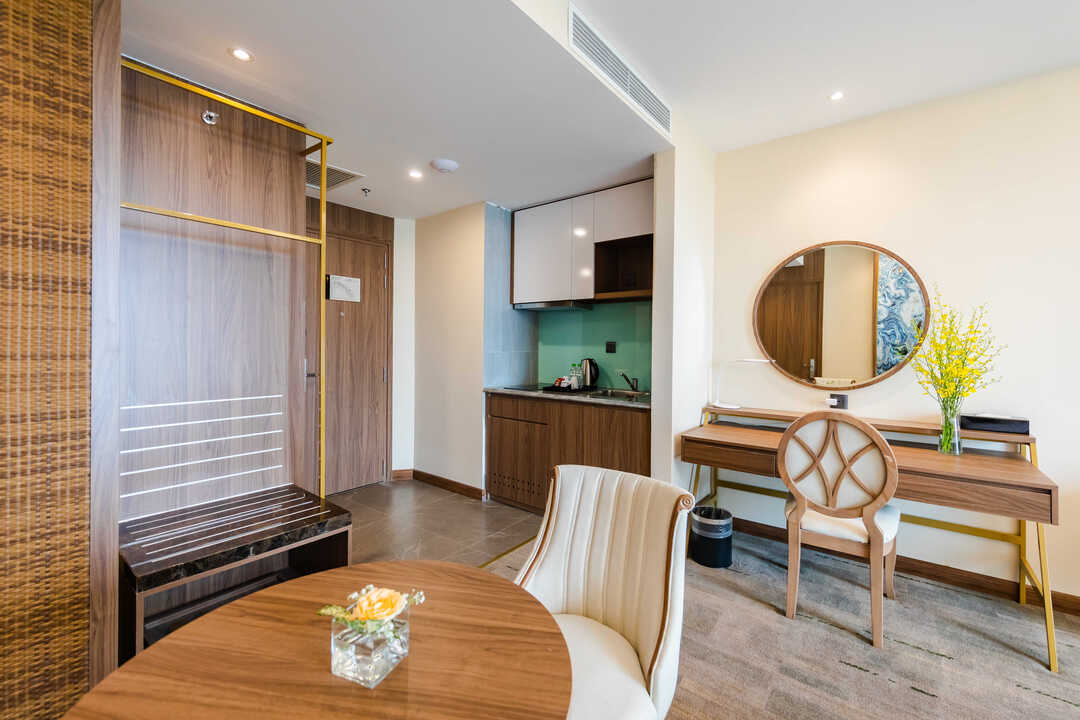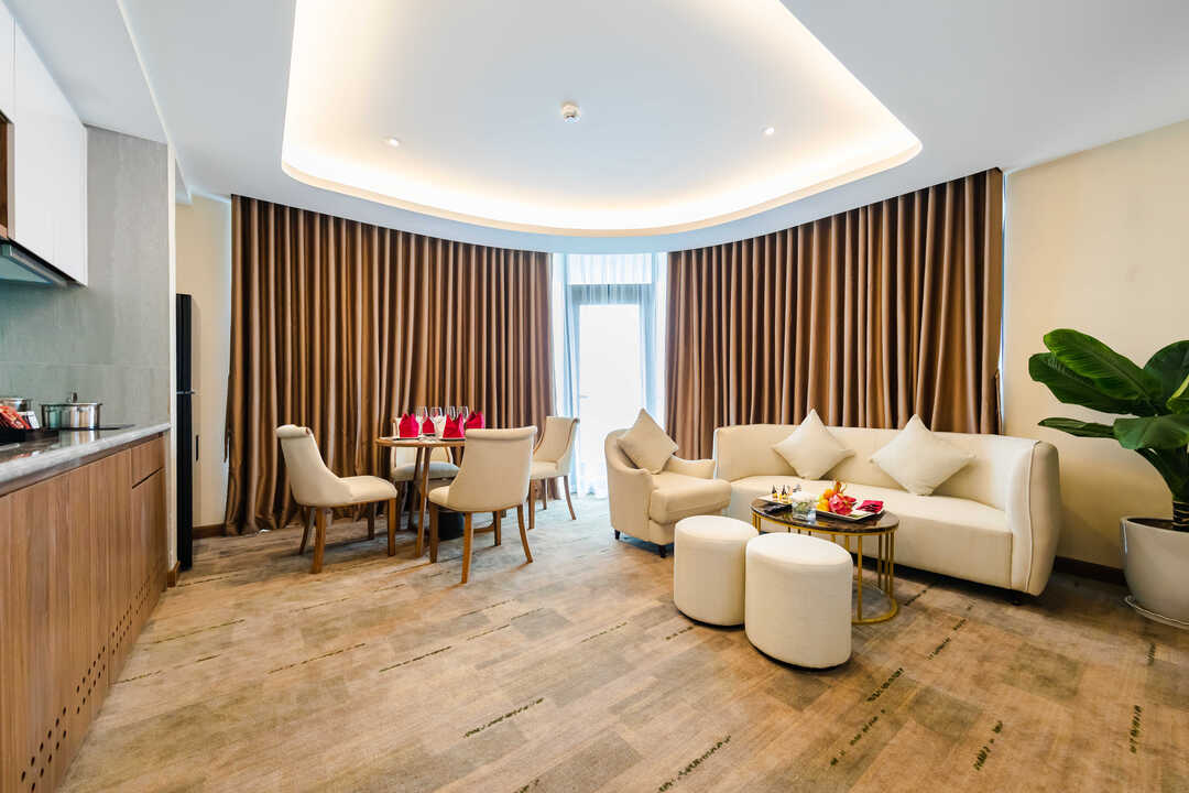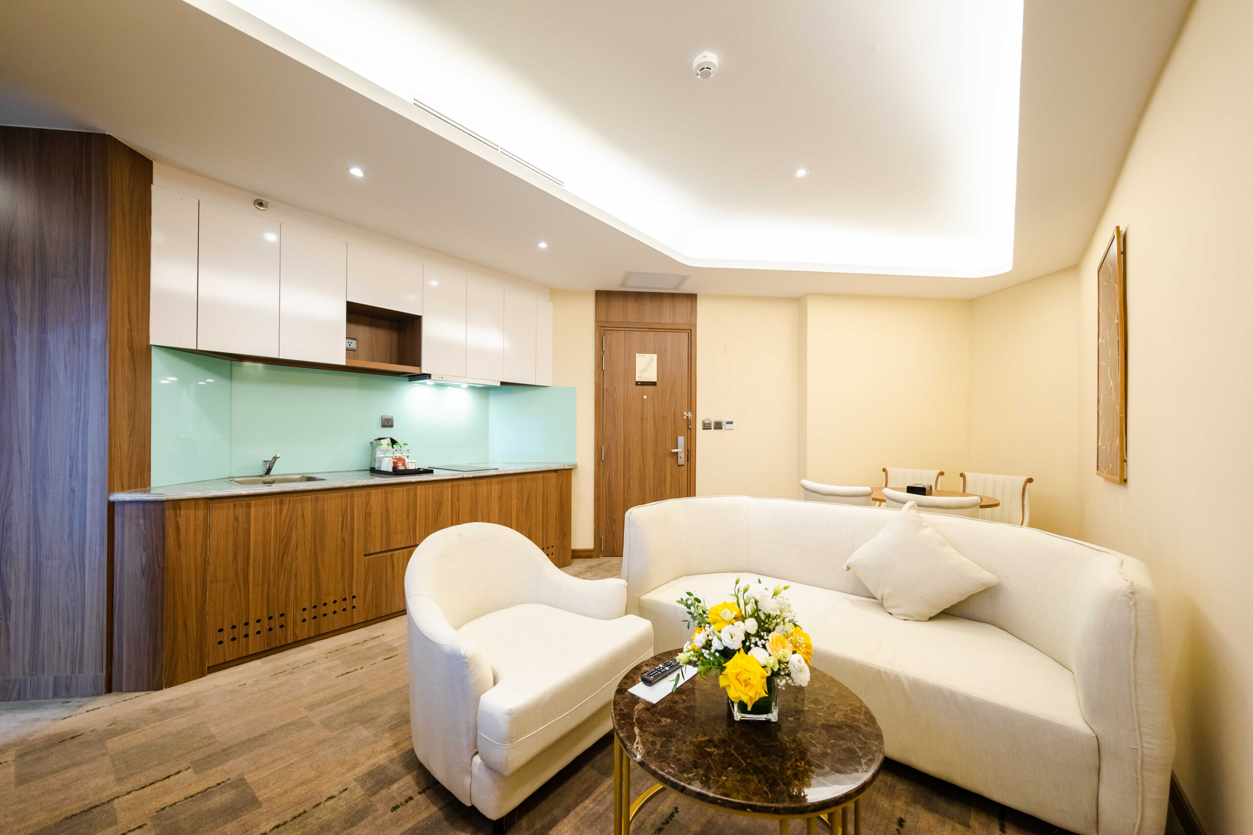 • Với hạng Executive Suite & Penthouse: Giá phòng đã bao gồm tiền thuê bếp, nhưng chưa bao gồm phí dọn vệ sinh là 100.000 VNĐ/ngày/phòng.