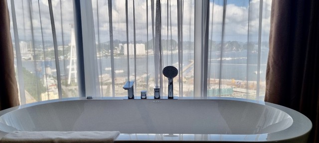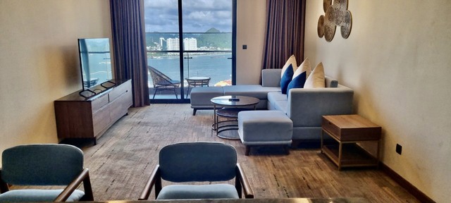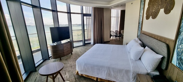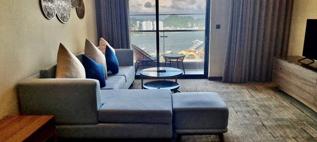 Tầm Nhìn Đắt Giá & Không Gian Rộng Mở Điểm nhấn tuyệt vời nhất của khách sạn chính là thiết kế tối ưu tầm nhìn hướng biển. Hầu hết các hạng phòng, từ Studio tiêu chuẩn cho đến các căn Penthouse thượng hạng, đều sở hữu ban công hướng biển, cho phép du khách thu trọn vẻ đẹp của Vịnh Hạ Long ngay từ phòng ngủ. Hệ thống phòng nghỉ tại đây cực kỳ rộng rãi, với diện tích linh hoạt từ 40m2 lên đến 225m2, đáp ứng mọi nhu cầu lưu trú.