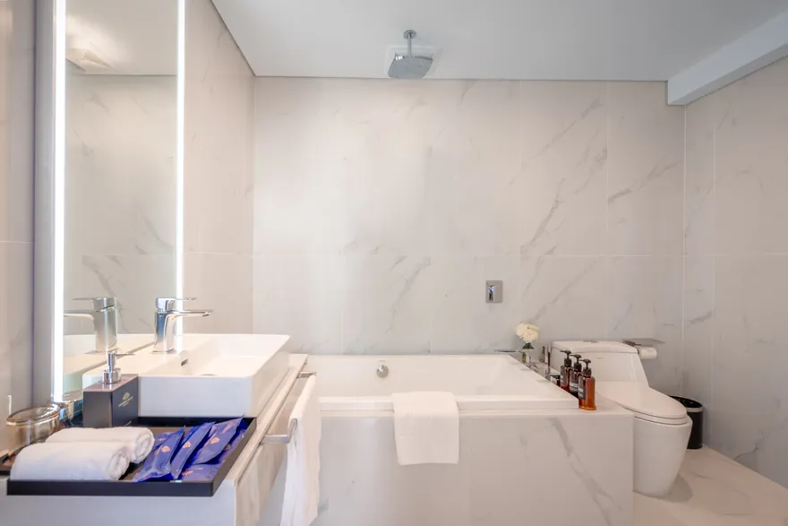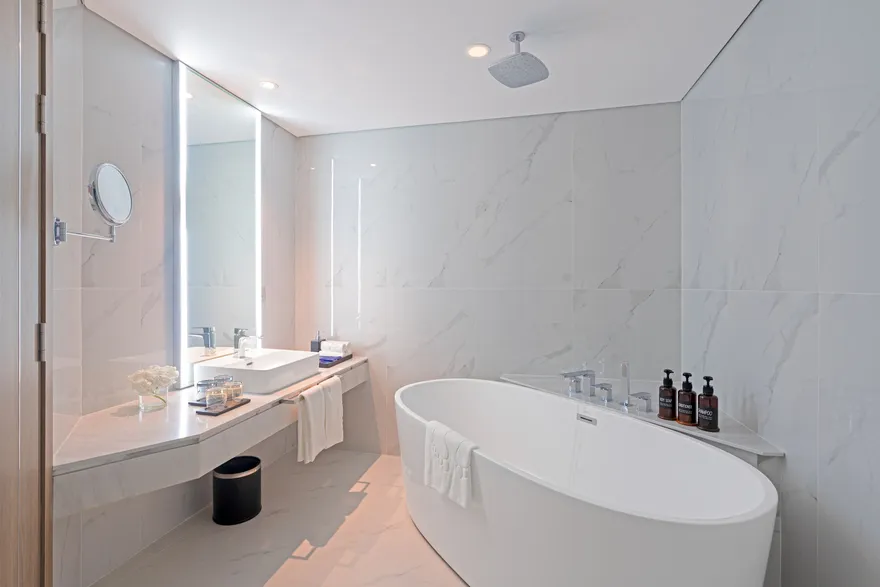 Trải nghiệm ẩm thực và thư giãn tại đây được đầu tư bài bản với nhà hàng Akasha chuyên món Trung Hoa tinh tế và hệ thống bar đa dạng như Top Bar ngắm toàn cảnh thành phố hay Atlantis Pool Bar bên hồ bơi. Du khách có thể thư giãn tại hồ bơi vô cực trên tầng thượng, trải nghiệm các liệu pháp massage chuyên sâu tại Kundalini Spa hoặc sử dụng trung tâm thể hình 24 giờ. Đối với các gia đình, khách sạn còn cung cấp các tiện ích như Câu lạc bộ trẻ em (Kids Club) và phòng trò chơi đầy sáng tạo.