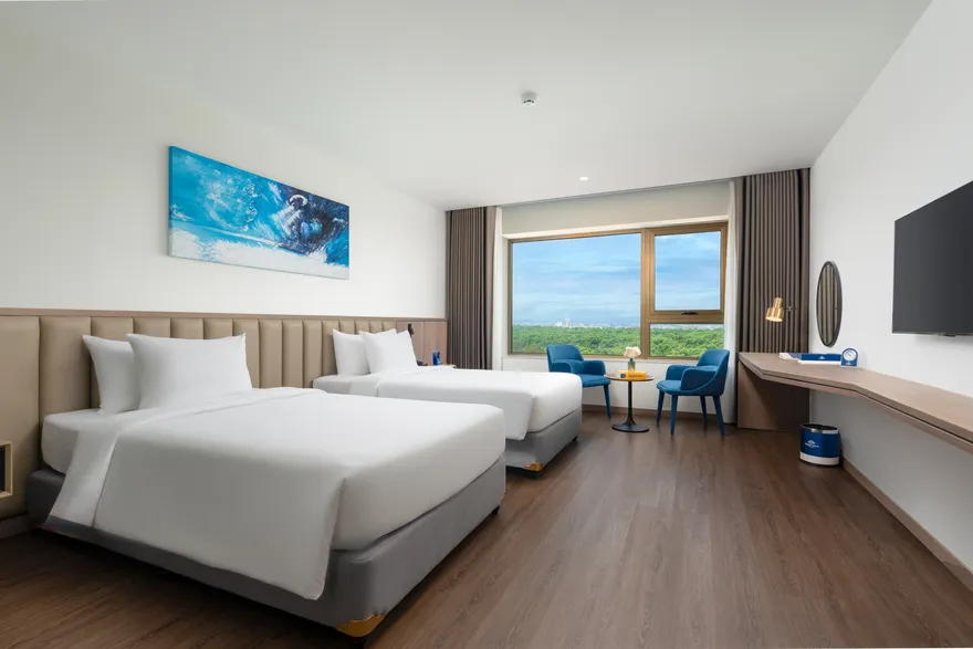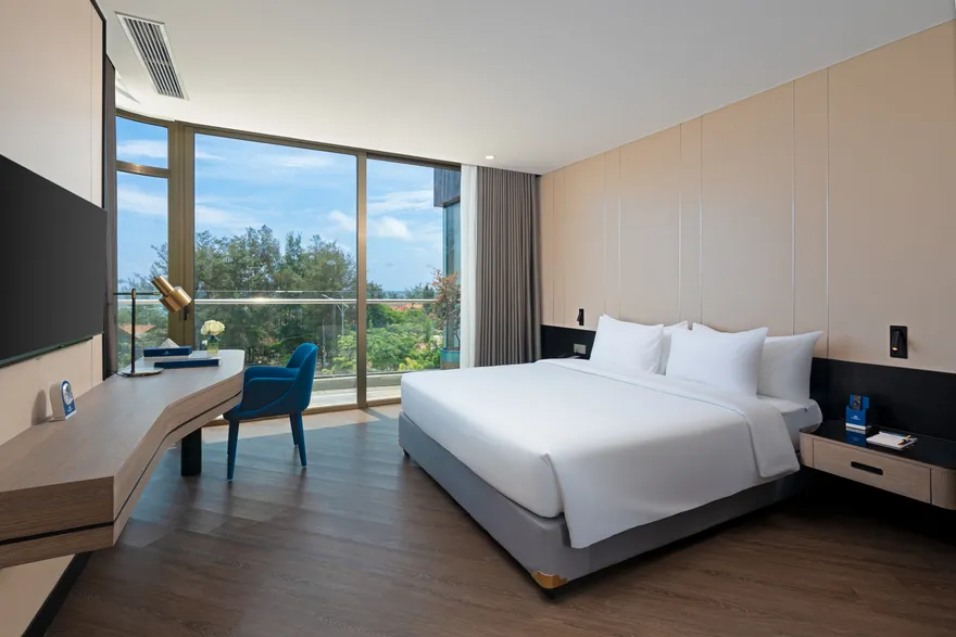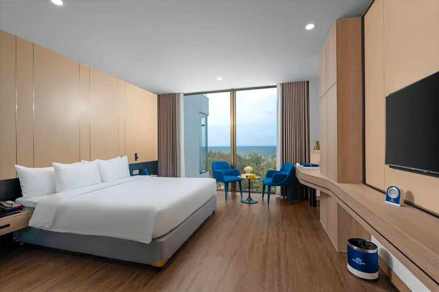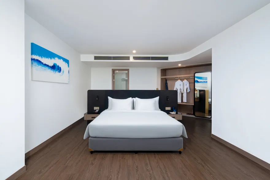 Hạng phòng Luxury Ocean View với thiết kế giường tròn độc đáo là một bước đi táo bạo nhằm thu hút phân khúc khách hàng trẻ và các cặp đôi yêu thích sự lãng mạn, khác biệt.