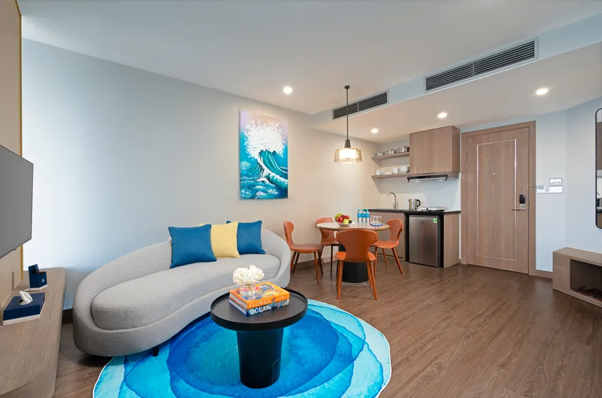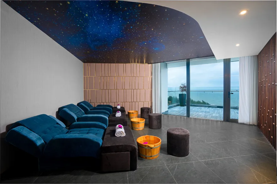 • Dịch vụ miễn phí: Khách lưu trú được miễn phí sử dụng internet tốc độ cao, phòng tập gym, hồ bơi vô cực và khu vui chơi trẻ em (Kid room).