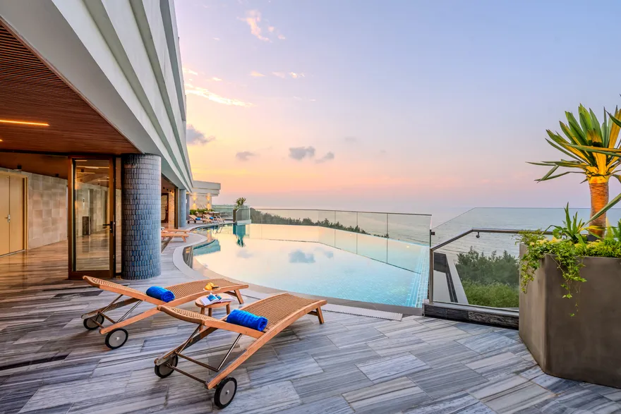 Về mặt kiến trúc, khách sạn là một tuyệt phẩm theo đuổi phong cách Art Deco, chú trọng vào các hình khối hình học, sự đối xứng hoàn hảo và việc sử dụng các vật liệu xa xỉ. Hệ thống sảnh chờ được thiết kế theo lối không gian mở khoáng đạt, cho phép ánh sáng tự nhiên và gió biển len lỏi vào từng ngách nhỏ ngay từ khi du khách bước chân vào. Hầu hết các hạng phòng nghỉ tại đây đều được tối ưu hóa tầm nhìn, bao trọn khung cảnh đại dương mênh mông hoặc sự tĩnh lặng thư thái của rừng cây xanh mát.
