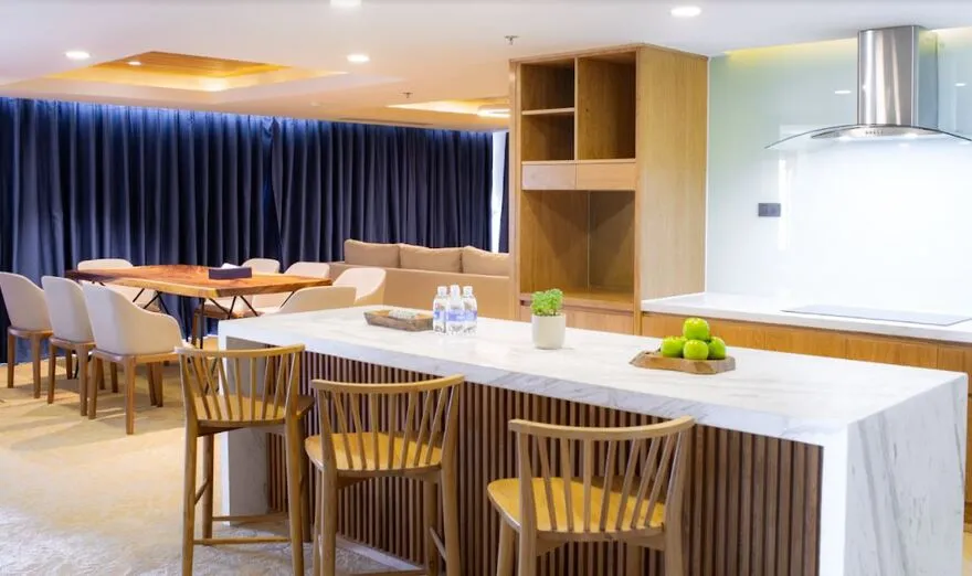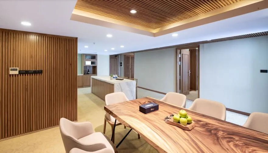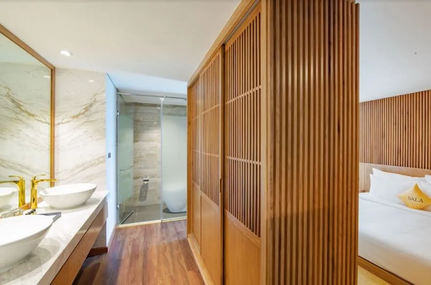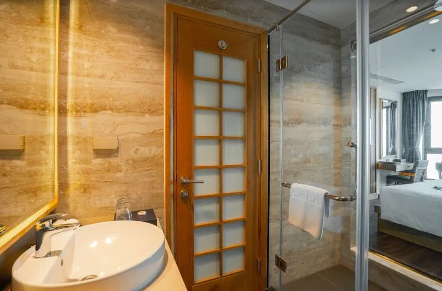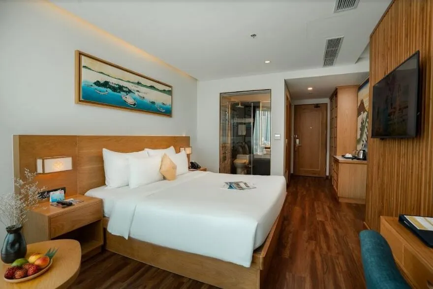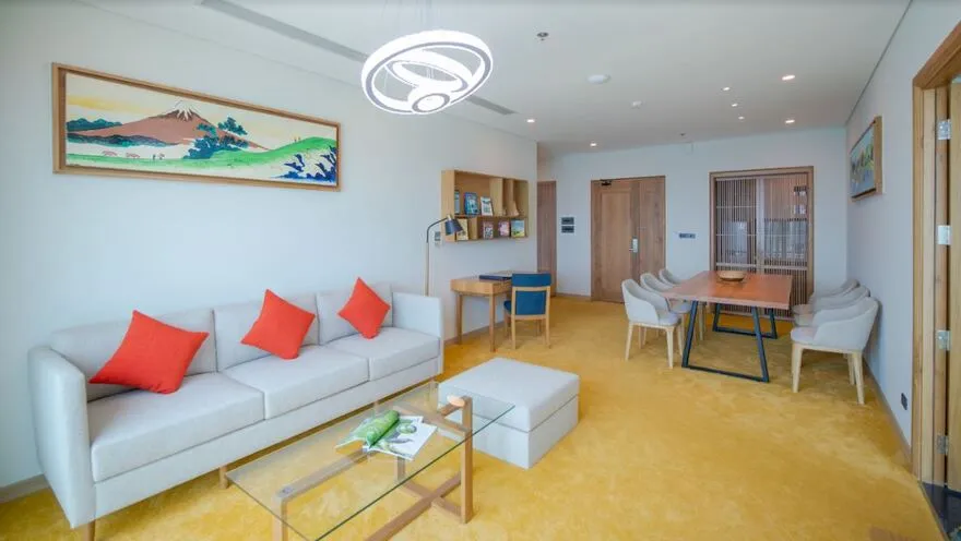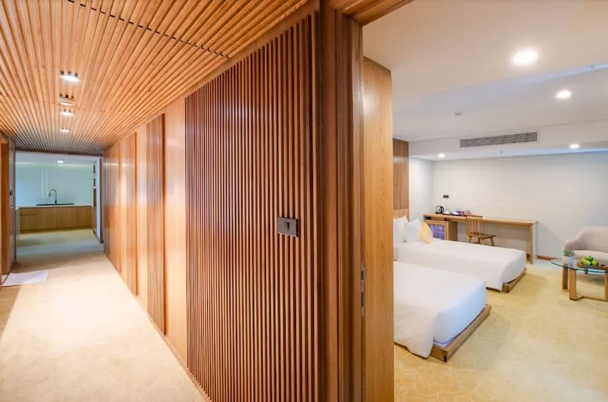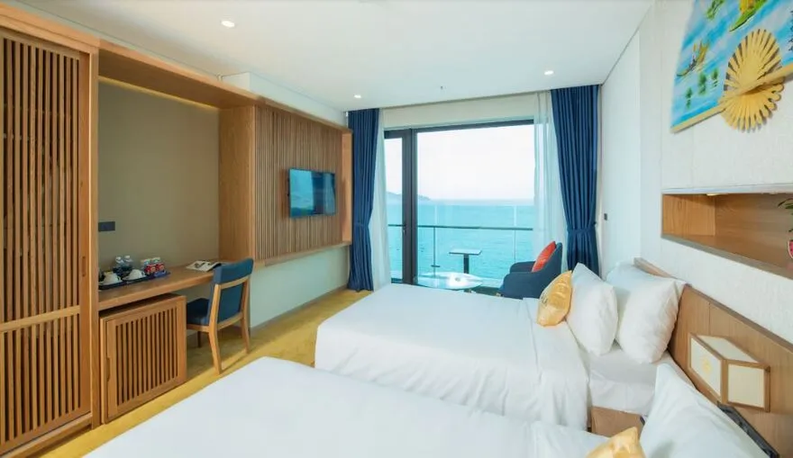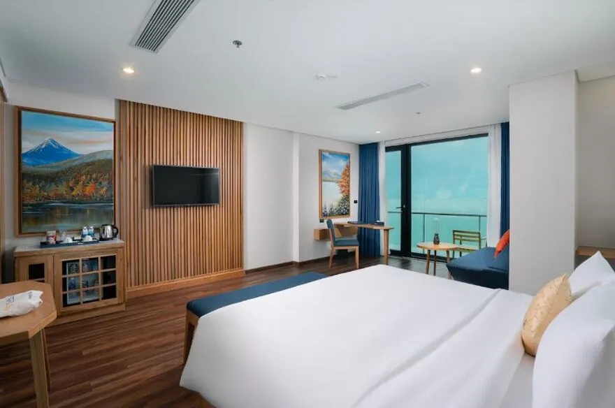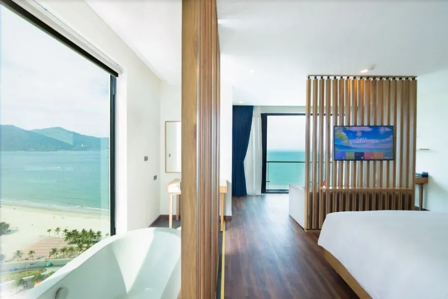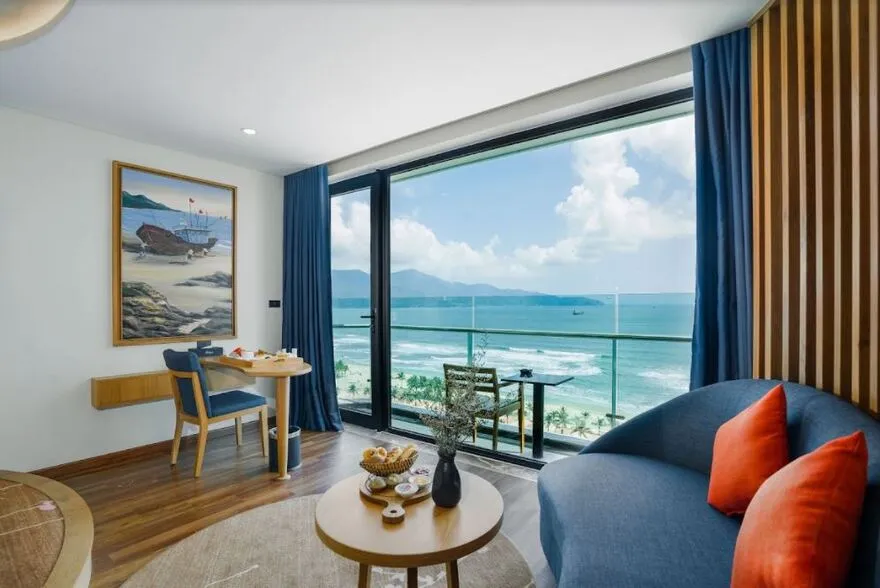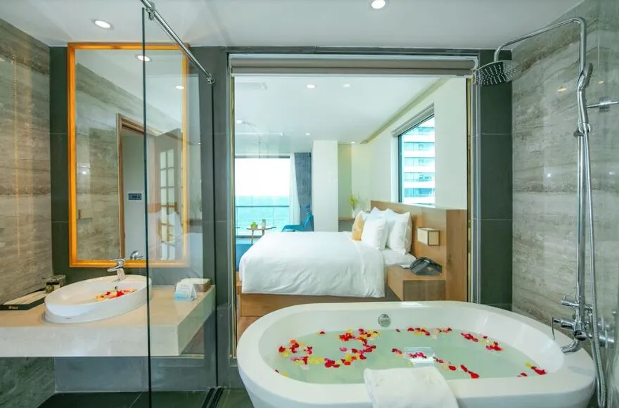 Tại đây, mỗi phòng nghỉ đều là một thiên đường thư giãn với triết lý thiết kế chú trọng vào sự thoải mái tối đa, trang bị giường Posturepedic đặc trưng cùng hệ thống gối đầu mềm mại để đảm bảo giấc ngủ trọn vẹn cho du khách. Hệ thống lưu trú được phân chia đa dạng từ hạng phòng Superior City View tinh gọn cho khách công tác, hạng Deluxe Sea View với ban công riêng hướng biển, đến Sala Suite lãng mạn có bồn tắm nằm sát khung cửa kính kịch trần. Đặc biệt, các căn hộ cao cấp Osaka và hạng phòng Presidential Suite với diện tích rộng lớn cùng đầy đủ tiện nghi bếp, máy giặt là lựa chọn hoàn hảo cho các gia đình hoặc những chuyến lưu trú dài ngày.