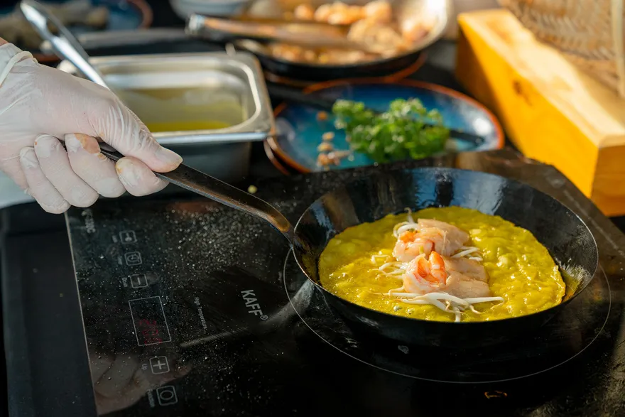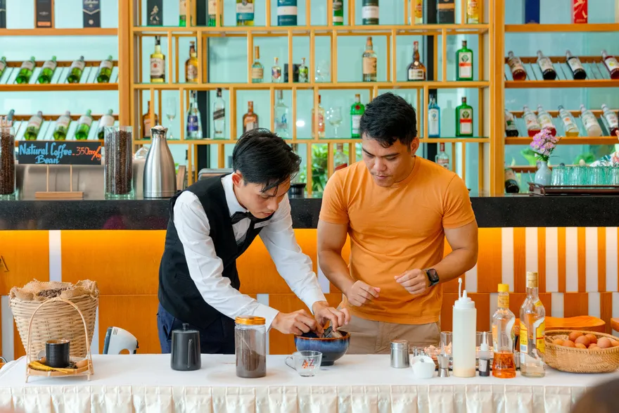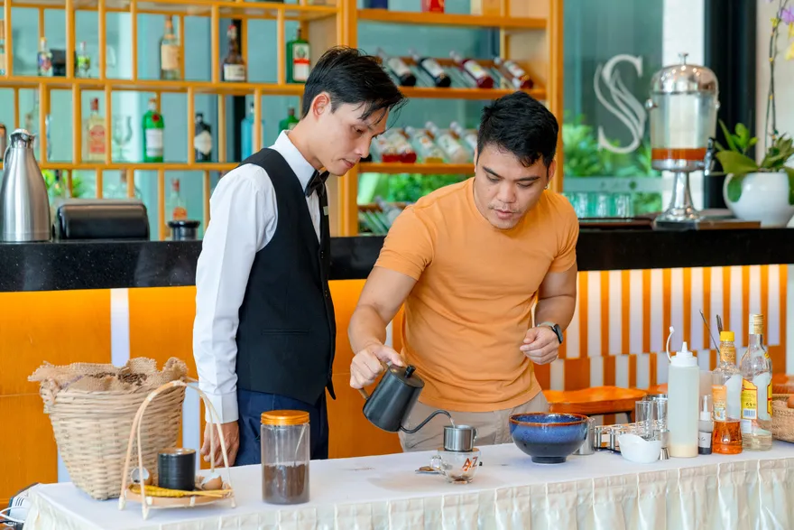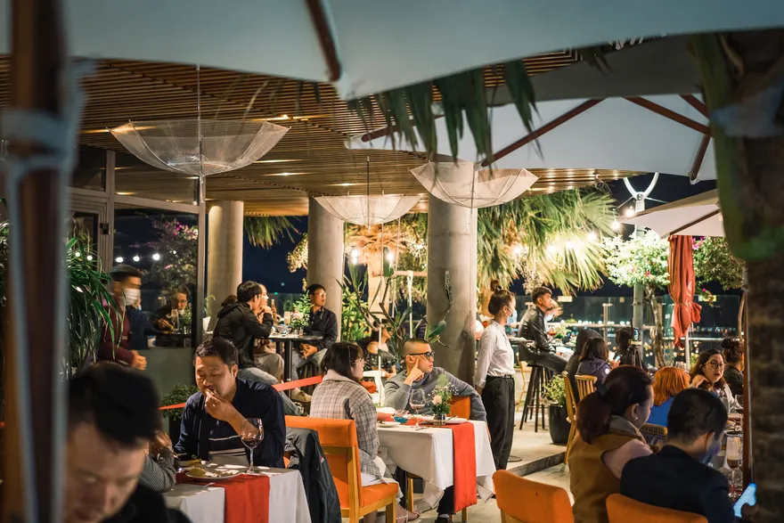 Hành trình khám phá ẩm thực tại khách sạn dẫn dắt du khách qua những cung bậc hương vị phong phú, bắt đầu từ bữa sáng buffet quốc tế tại nhà hàng SALA tầng 3. Lên tới tầng 25, Wine Lounge mở ra một không gian thưởng thức các set ăn tối Á Đông tinh tế trong khung cảnh lãng mạn, nơi du khách có thể nếm thử những món đặc sản trứ danh như Gà Đèo Le hay Tôm rang muối Hồng Kông. Hệ thống giải trí còn được mở rộng với S Café tại tầng 1 chuyên phục vụ cà phê trứng và cà phê dừa đặc sản, Pool & Palms Bar cạnh hồ bơi vô cực và Rooftop Sky Bar tại tầng 26 mang lại tầm nhìn Panorama toàn cảnh thành phố lung linh về đêm.