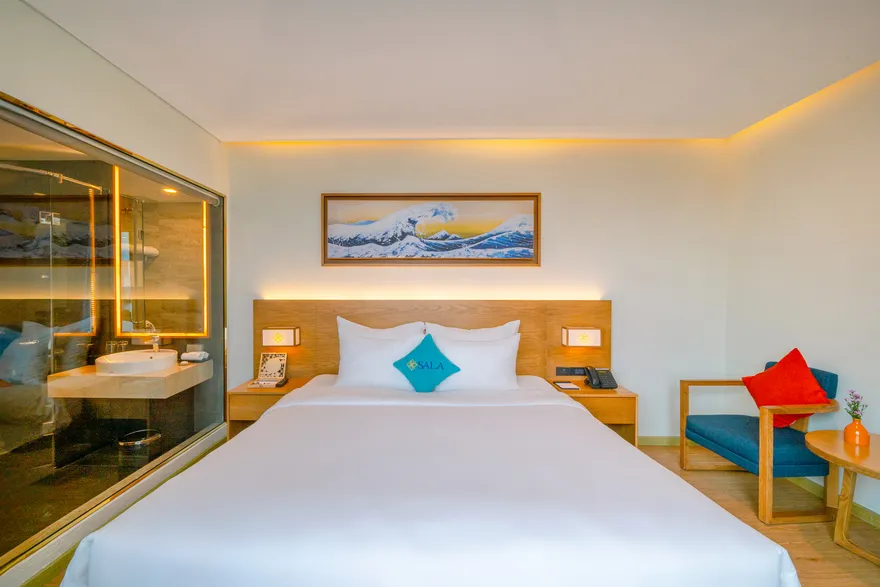 • Phù hợp với Các cặp đôi hoặc gia đình nhỏ có nhu cầu không gian nghỉ ngơi rộng rãi, tiện nghi cao cấp hơn hạng phòng tiêu chuẩn nhưng vẫn tối ưu về chi phí so với hạng Sala Suite hướng biển trực diện.
