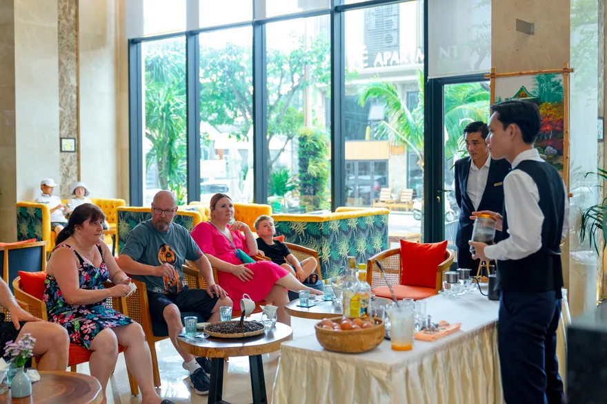 Sala Danang Beach Hotel còn ghi điểm với dịch vụ logistics chu đáo thông qua đặc quyền đưa đón sân bay miễn phí bằng xe Shuttle Bus theo lịch trình cố định. Với 8 chuyến xe mỗi ngày và các điểm đón thuận tiện tại Cột số 2 của Ga Quốc tế hoặc Cửa A4 tại Ga Nội địa, khách sạn đảm bảo hành trình của du khách luôn suôn sẻ và an tâm. Từ vị trí thuận lợi này, du khách cũng dễ dàng kết nối đến các danh thắng nổi tiếng như Cầu Rồng, Núi Ngũ Hành Sơn hay chùa Linh Ứng, tạo nên một kỳ nghỉ trọn vẹn và đáng nhớ tại thành phố biển miền Trung.