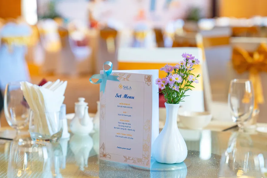• Yêu cầu đặc biệt: Các dịch vụ như ăn sáng mang đi (Breakfast Box) hoặc yêu cầu ăn kiêng đặc biệt cần thông báo trước cho bộ phận Lễ tân (phím số “0”).