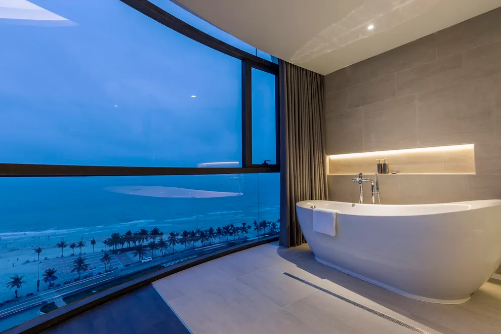 Đỉnh cao của sự sang trọng tại Stella Maris nằm ở bộ sưu tập các hạng phòng Suite. Với diện tích rộng rãi từ 50m2 đến 70m2, các phòng Executive Suite và Stella Maris Suite được trang bị những tiện nghi vượt trội như bồn tắm nằm thư giãn, máy pha cà phê riêng và đặc quyền giảm giá 10% cho dịch vụ ăn uống, spa. Đặc biệt, căn Stella Maris Suite được xem là “trùm cuối” khi sở hữu tầm nhìn Panorama 180 độ “triệu đô”, ôm trọn cả đường bờ biển Mỹ Khê lẫn bán đảo Sơn Trà hùng vĩ, mang lại trải nghiệm thị giác choáng ngợp.