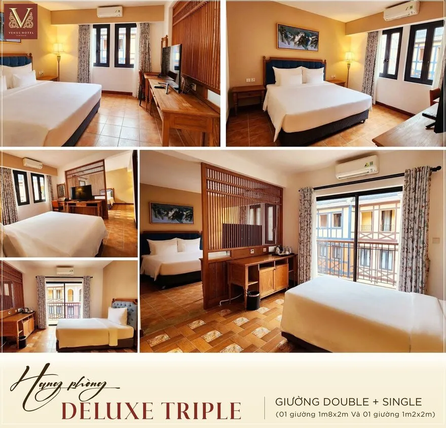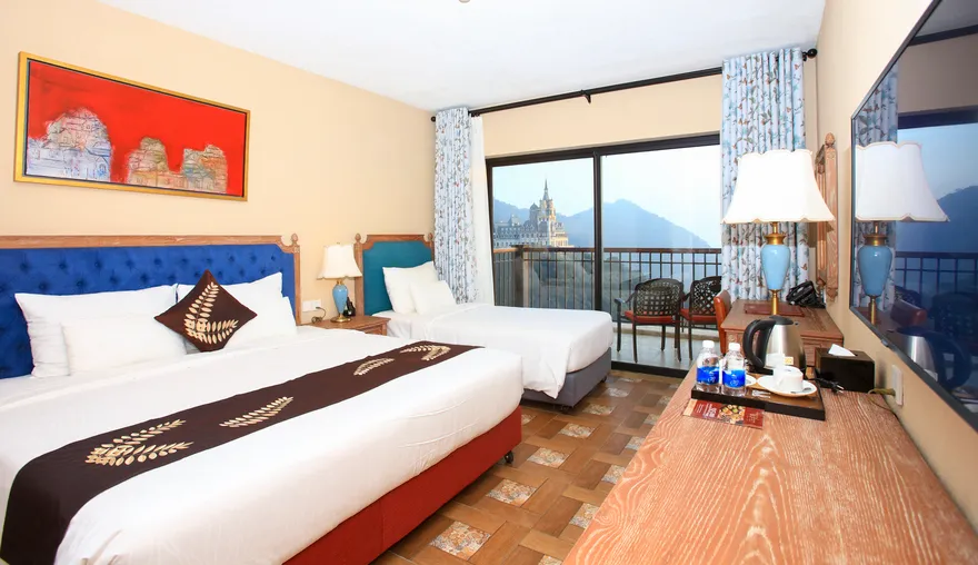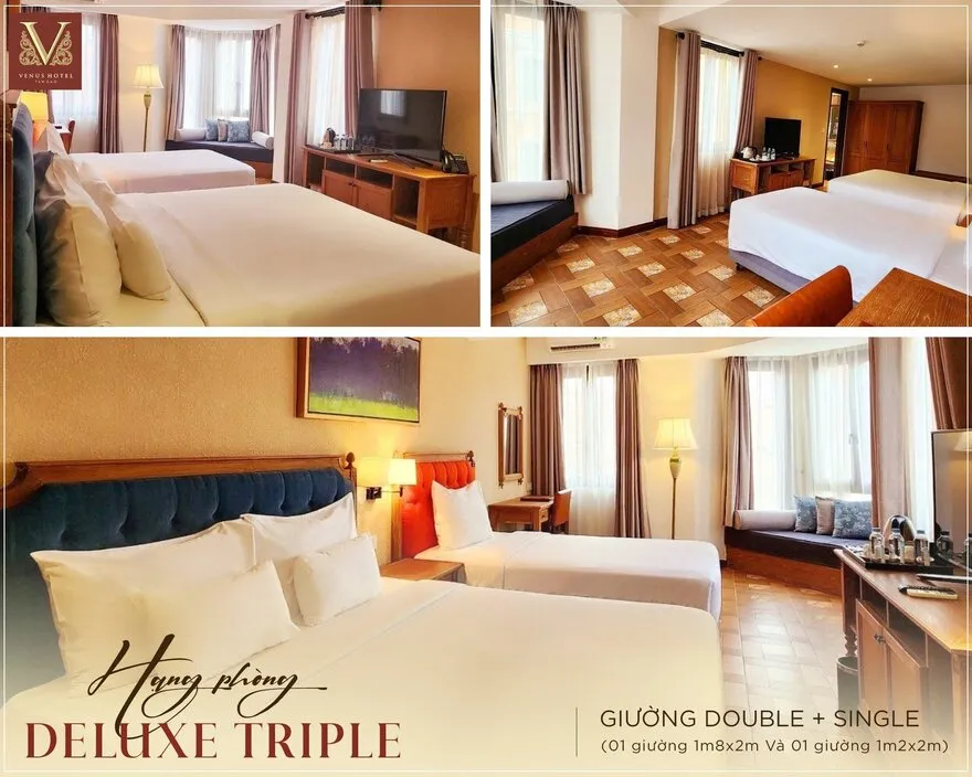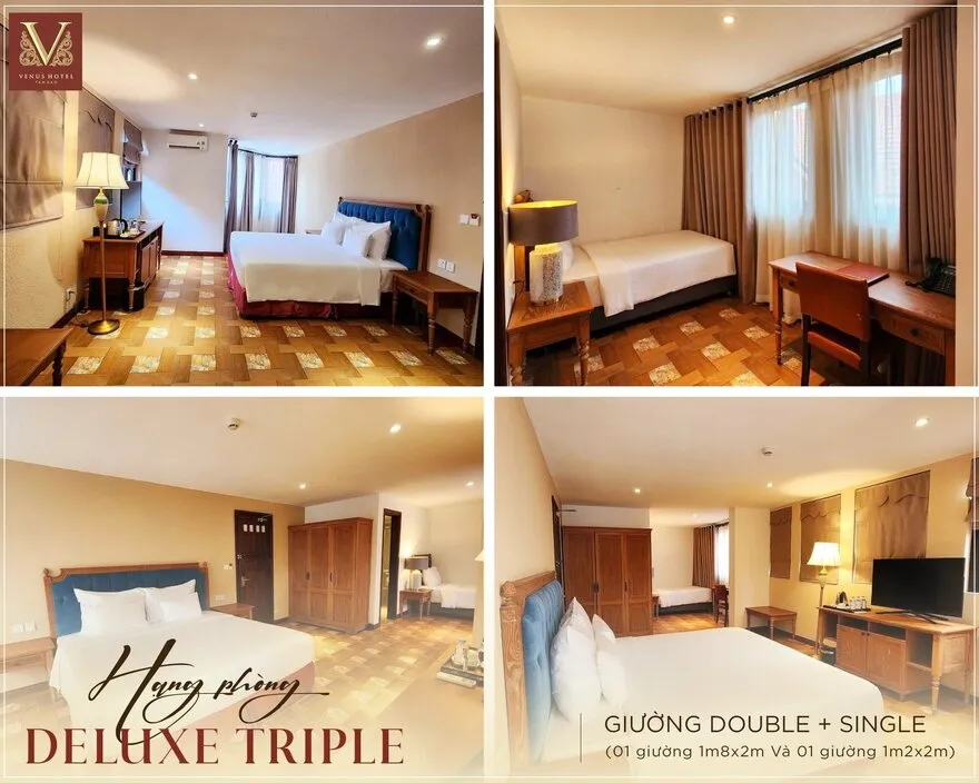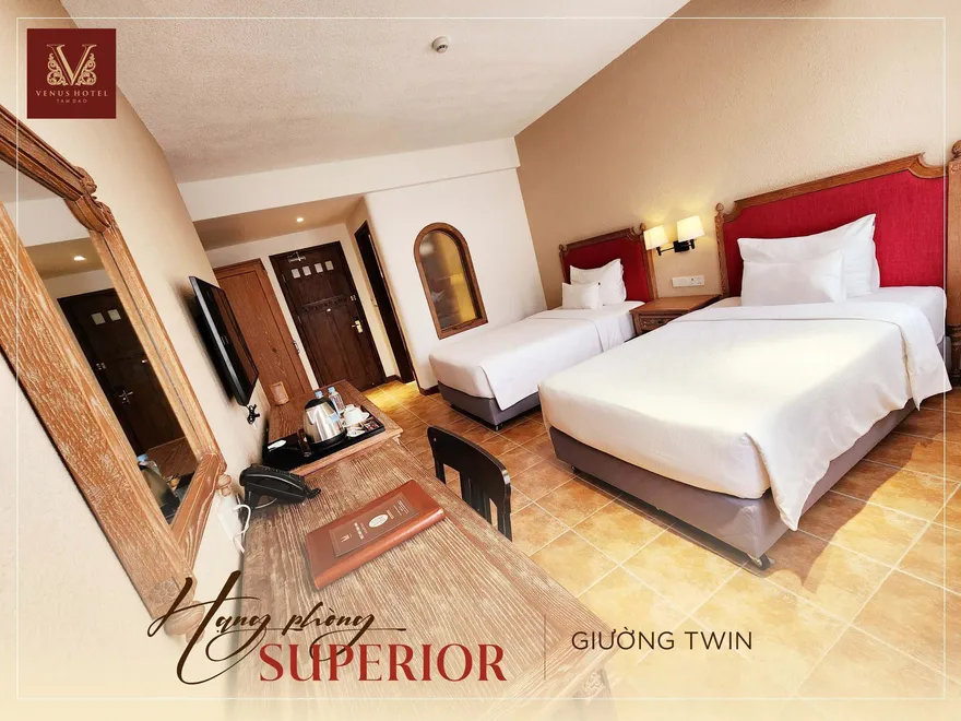 Để mang đến những trải nghiệm lưu trú đẳng cấp, Venus Hotel cung cấp hệ thống 196 phòng nghỉ được chia làm 08 hạng phòng khác nhau, đáp ứng trọn vẹn mọi nhu cầu từ các cặp đôi, gia đình đến các tổ chức doanh nghiệp. Du khách có thể lựa chọn các hạng phòng đa dạng như Superior hướng thành phố yên tĩnh, Deluxe Mountain View với tầm nhìn panorama hướng thung lũng, hay Deluxe Triple với không gian linh hoạt phù hợp cho nhóm bạn. Đối với những ai tìm kiếm không gian ấm cúng cho tổ ấm, hạng phòng Family Suite sở hữu ban công thoáng đạt là sự lựa chọn lý tưởng, trong khi Grand Suite mang đến đẳng cấp cao nhất với phòng khách riêng biệt và tầm nhìn bao trọn lâu đài Tam Đảo.