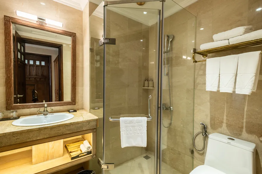 Có, hạng phòng cao cấp nhất này được trang bị phòng vệ sinh với lựa chọn nhà tắm kính hoặc bồn tắm nằm sang trọng.