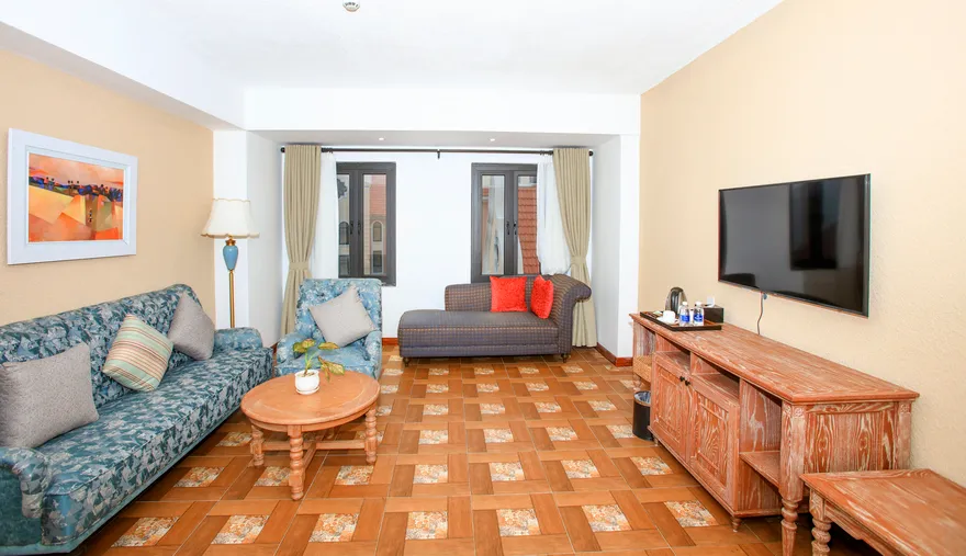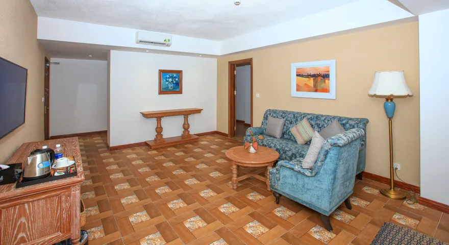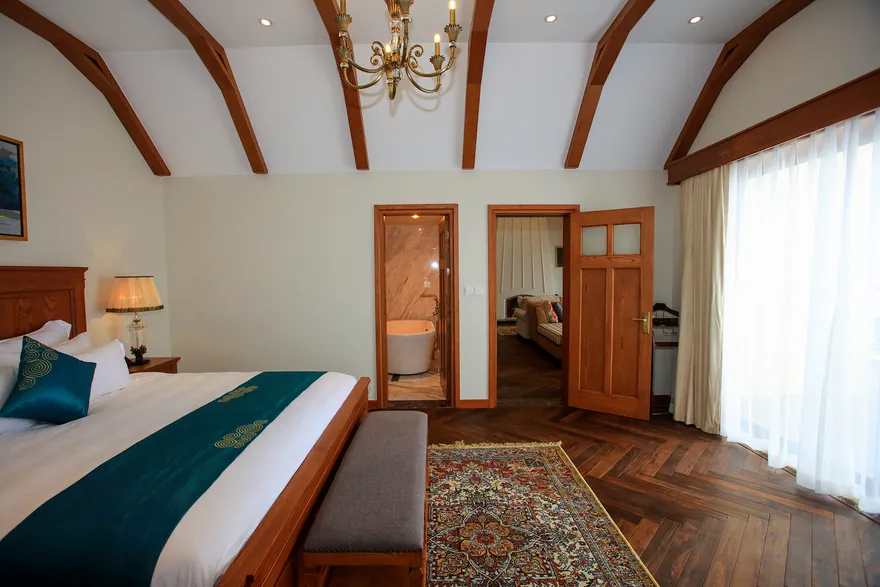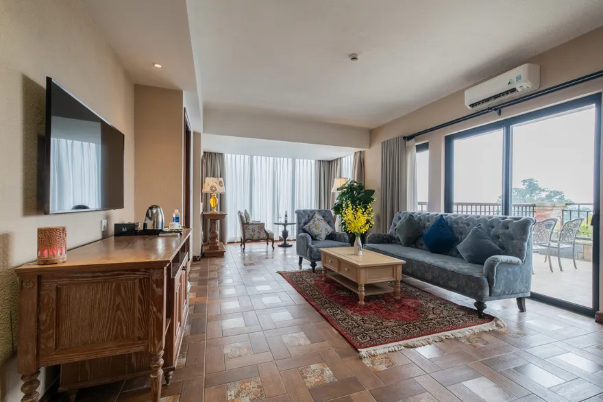 Senior Suite là hạng phòng căn góc, sở hữu diện tích lớn hơn (65m^2) và có đến 02 ban công rộng thoáng bao quanh, mang lại tầm nhìn đa diện ra thung lũng.