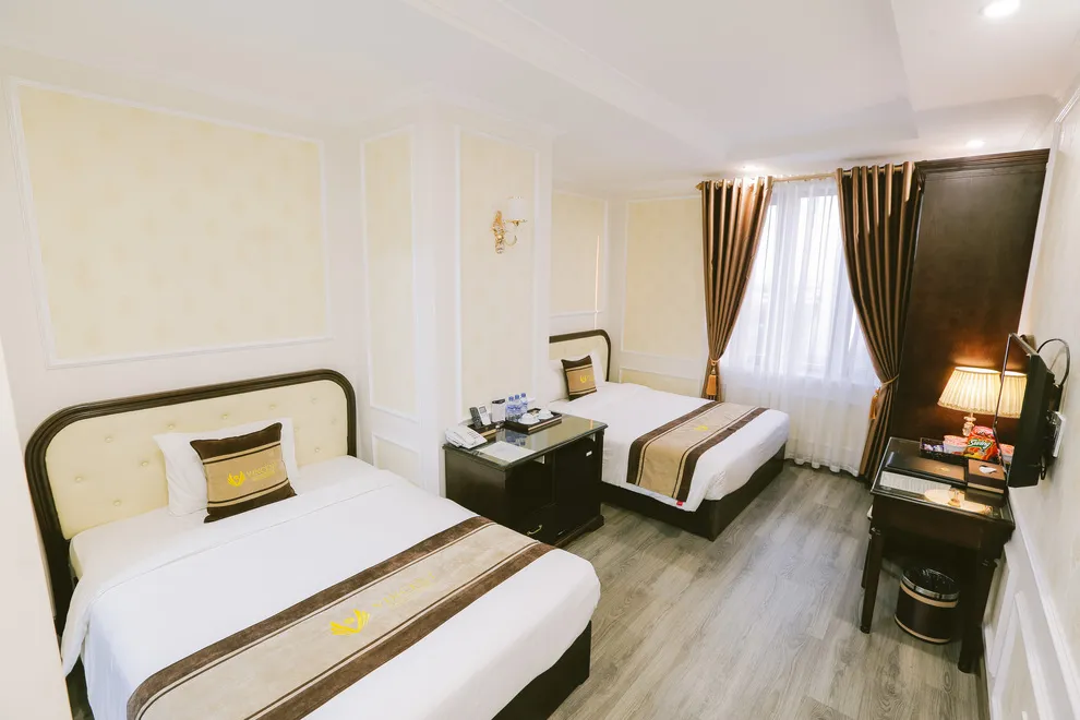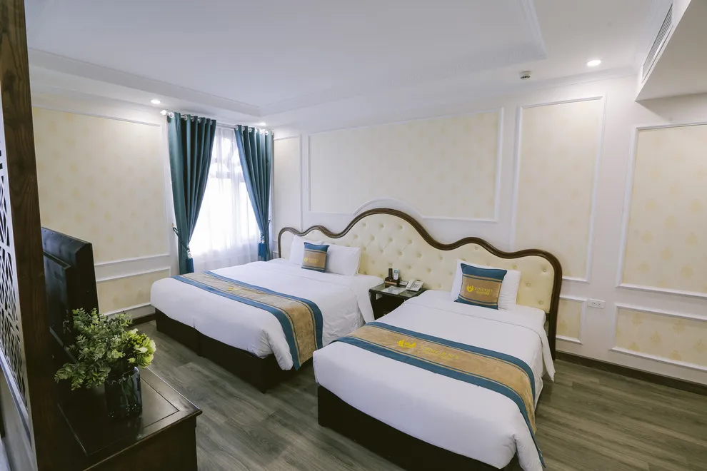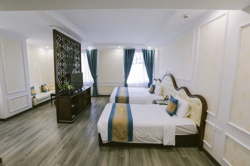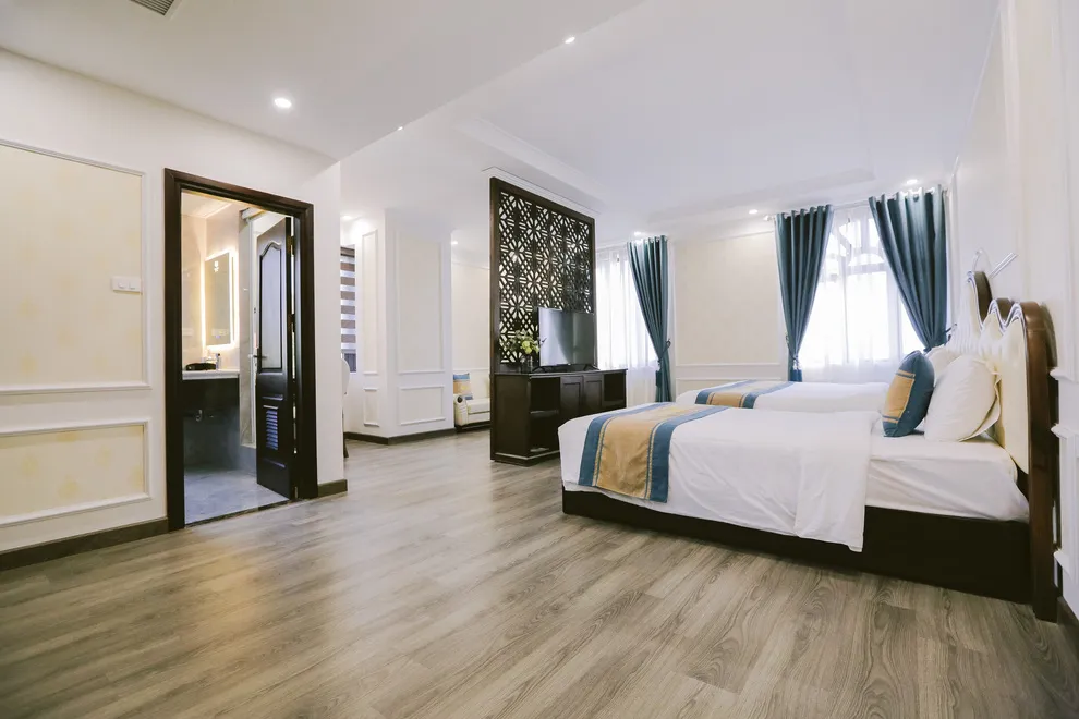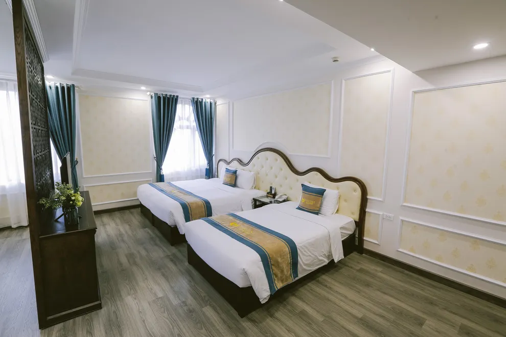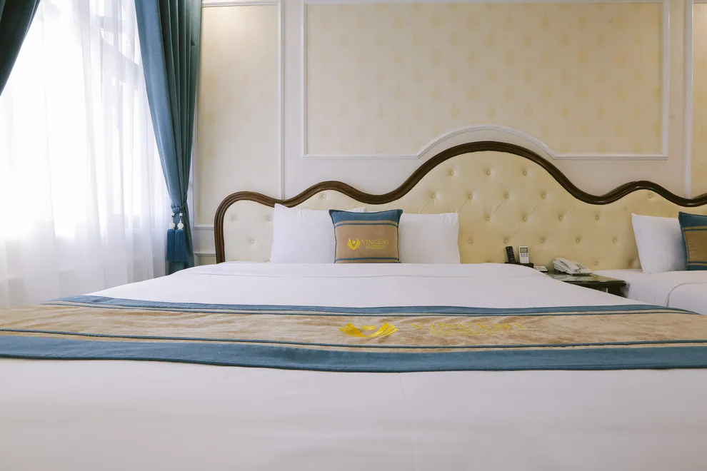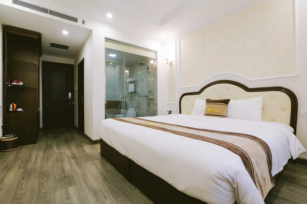 Không chạy đua về số lượng đại trà, Vincent Hạ Long tập trung vào chất lượng trải nghiệm với quy mô 50 phòng nghỉ được bố trí khoa học. Hệ thống giao thông trục đứng được đảm bảo bởi 02 thang máy tốc độ cao, giúp việc di chuyển giữa các tầng luôn nhanh chóng và êm ái. Khách sạn cung cấp đa dạng các hạng phòng để du khách lựa chọn. Phòng Deluxe Double với giường đôi lớn (1.6m x 2m) là lựa chọn tiêu chuẩn cho các cặp đôi. Phòng Junior Twin với 02 giường đơn linh hoạt là giải pháp kinh tế cho đôi bạn đi du lịch cùng nhau. Nếu yêu cầu không gian rộng rãi hơn, hạng phòng Suite được bố trí giường King size (2m x 2m) hoặc 02 giường đôi sẽ mang lại sự thoải mái tối đa. Đặc biệt, các hạng phòng cao cấp như Blue Suite và Vincent Suite sở hữu nội thất tinh tế, lý tưởng cho gia đình nhỏ. Dù ở hạng phòng nào, du khách cũng được tận hưởng tiện ích trà, cà phê và 02 chai nước suối miễn phí mỗi ngày, cùng hệ thống Wifi tốc độ cao phủ sóng toàn tòa nhà.
