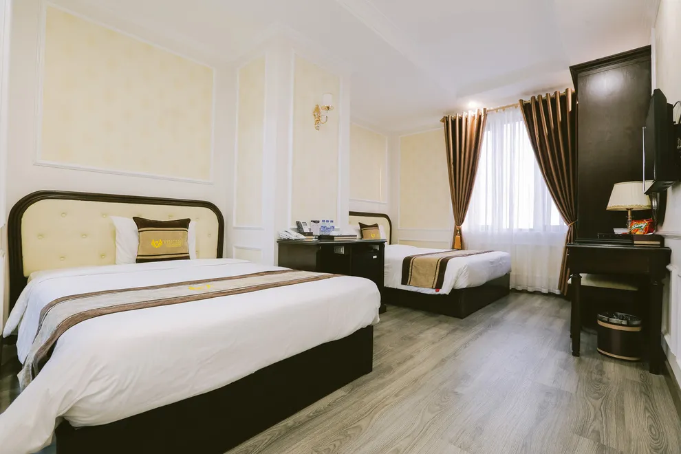 Bạn đang tìm kiếm một trạm dừng chân lý tưởng để bắt đầu hành trình khám phá di sản thiên nhiên thế giới? Khách sạn Vincent Hạ Long chính là câu trả lời hoàn hảo cho kỳ nghỉ của bạn. Tọa lạc tại vị trí đắc địa số 44 khu 1, đường Hạ Long, Vincent Hotel không chỉ là một cơ sở lưu trú, mà còn là cửa ngõ kết nối du khách với nhịp sống sôi động nhất của thành phố biển. Được định vị theo tiêu chuẩn Quốc tế 3 sao, khách sạn nổi bật giữa trung tâm Bãi Cháy với kiến trúc tòa nhà cao 07 tầng kiêu hãnh. Sở hữu thiết kế Tân cổ điển sang trọng pha lẫn hơi thở hiện đại, không gian nơi đây mang đến cảm giác ấm cúng nhưng không kém phần đẳng cấp ngay từ cái nhìn đầu tiên.