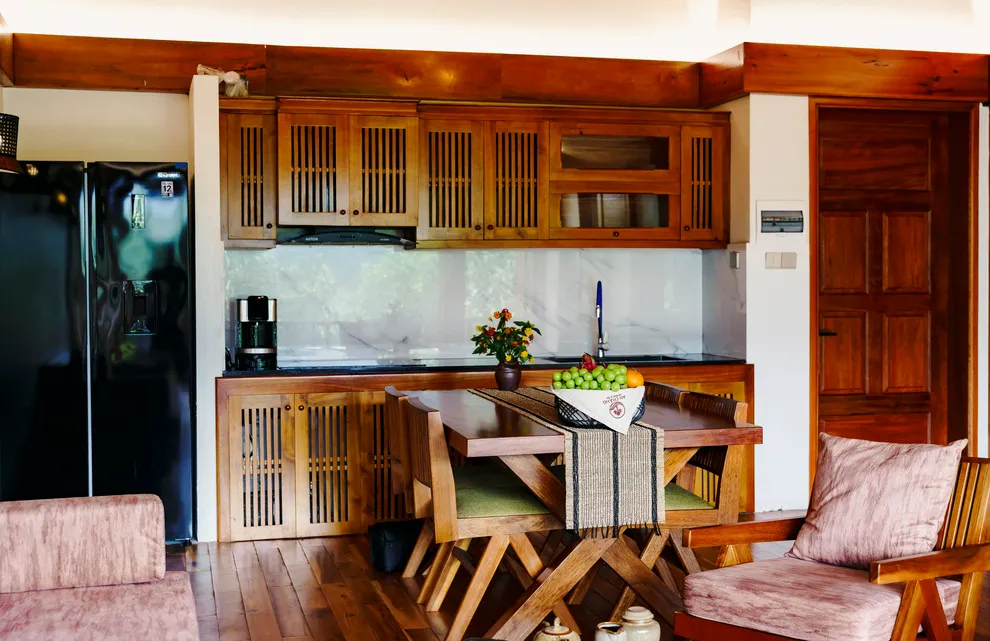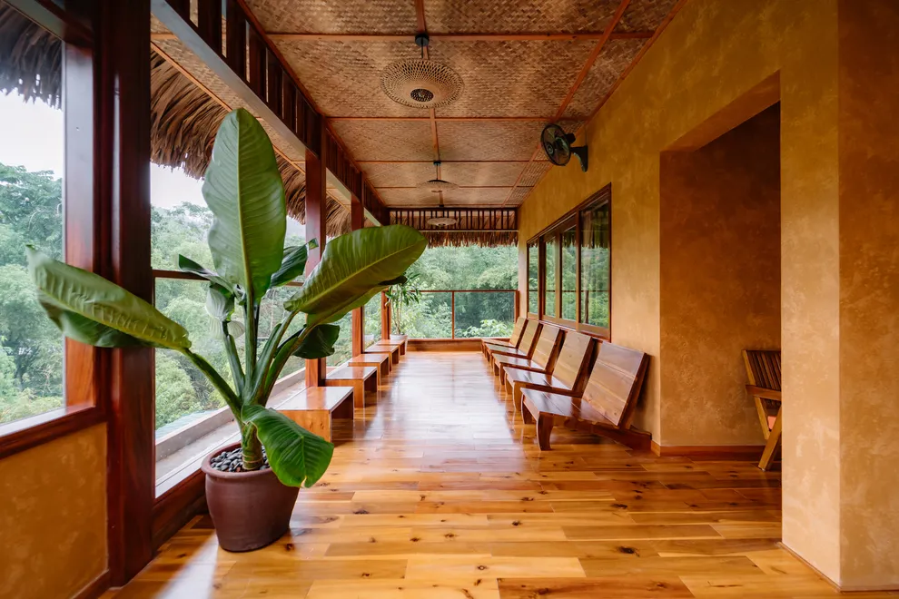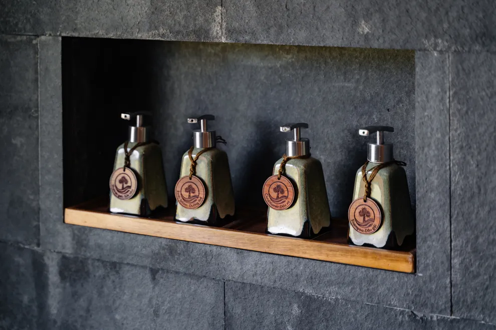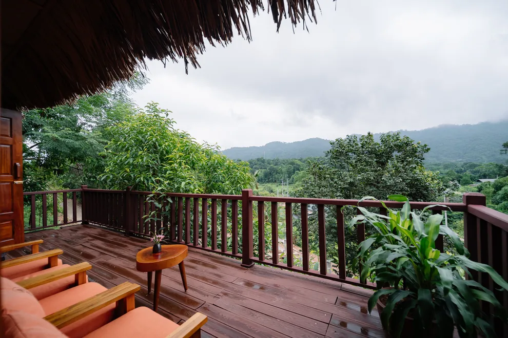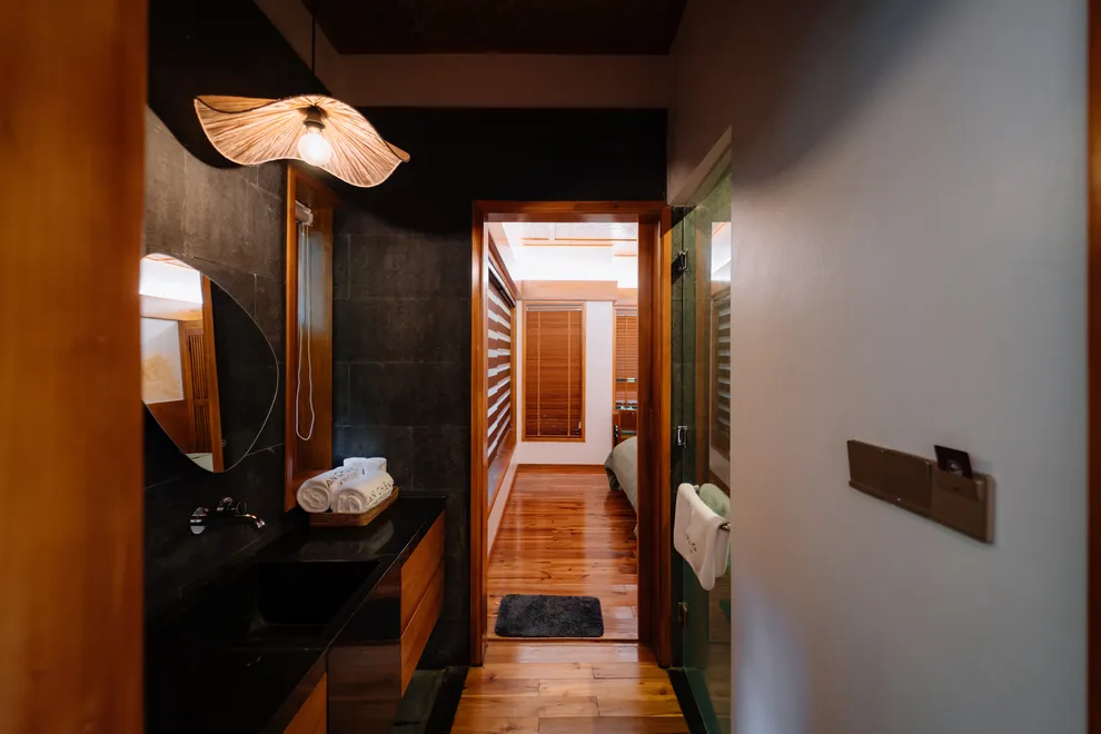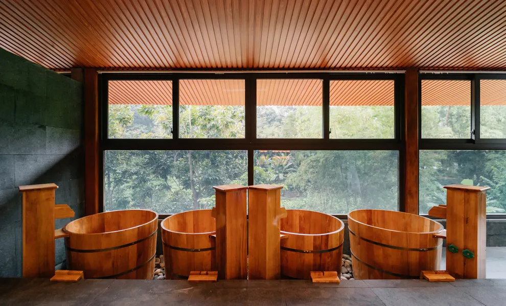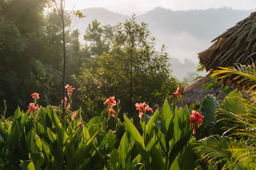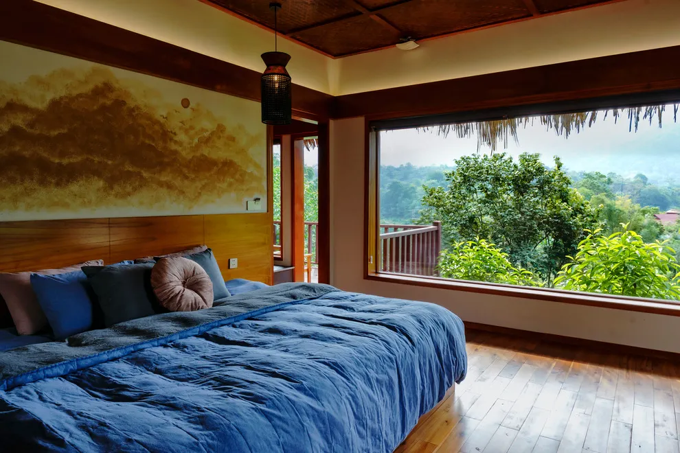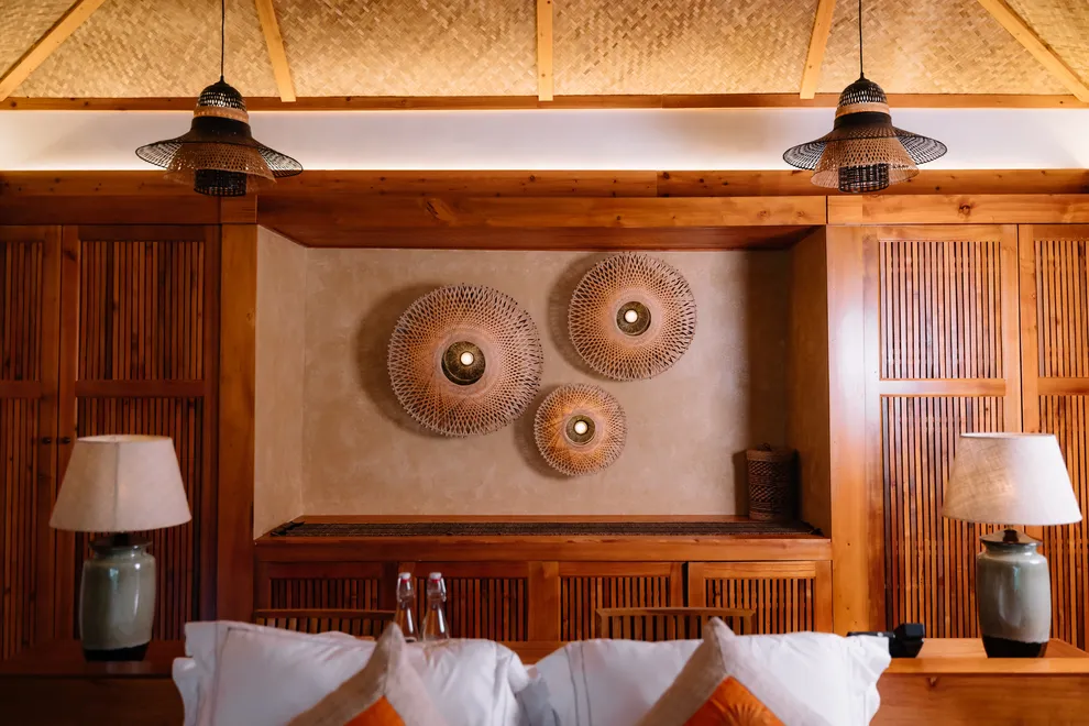 Triết lý kiến trúc “Vernacular Modernism” tại đây mang thông điệp về một nơi hạt giống niềm vui và tình yêu được gieo mầm. Các công trình sử dụng vật liệu tự nhiên như gỗ pơ-mu, lá cọ và tre nứa để tạo nên những không gian “biết thở”, hòa nhập hoàn toàn vào hệ sinh thái rừng nhiệt đới. Mỗi căn villa được ví như một kén lụa sang trọng, nơi du khách có thể lắng nghe tiếng suối chảy từ ban công riêng và tận hưởng sự thư thái nhờ thiết kế mái cọ dốc cách nhiệt. Nội thất phòng nghỉ còn chú trọng đến trải nghiệm giác quan với bồn tắm sục Jacuzzi làm từ gỗ pơ-mu tỏa hương thơm tự nhiên.