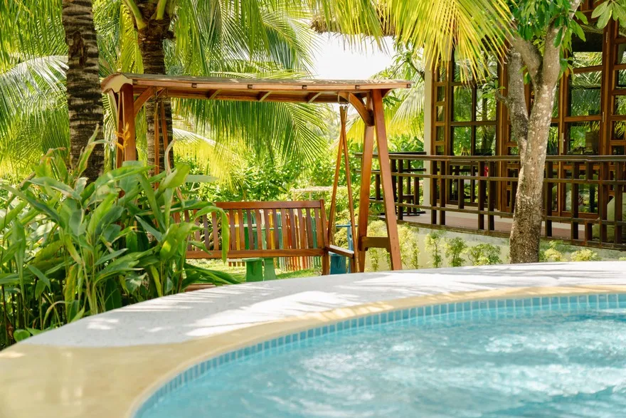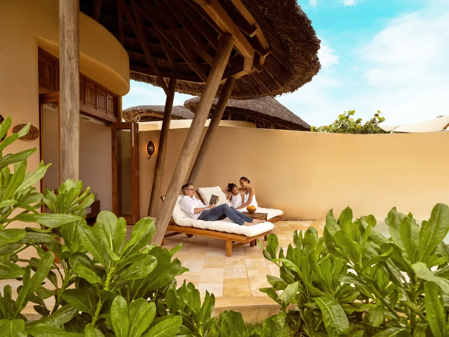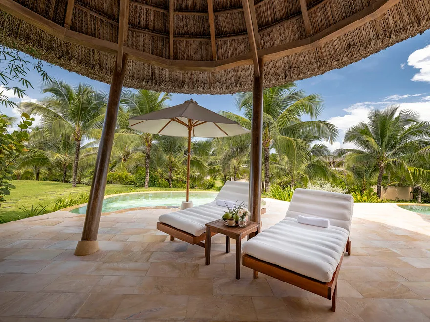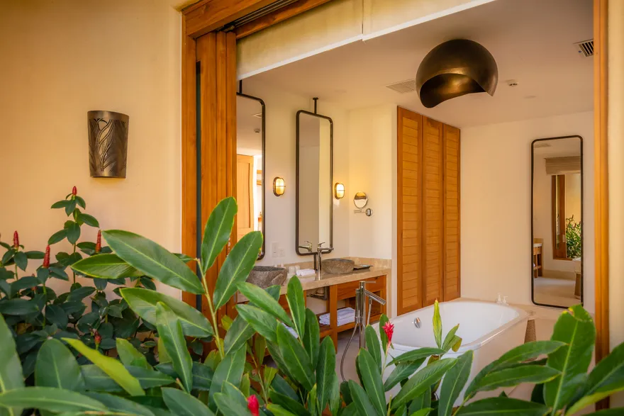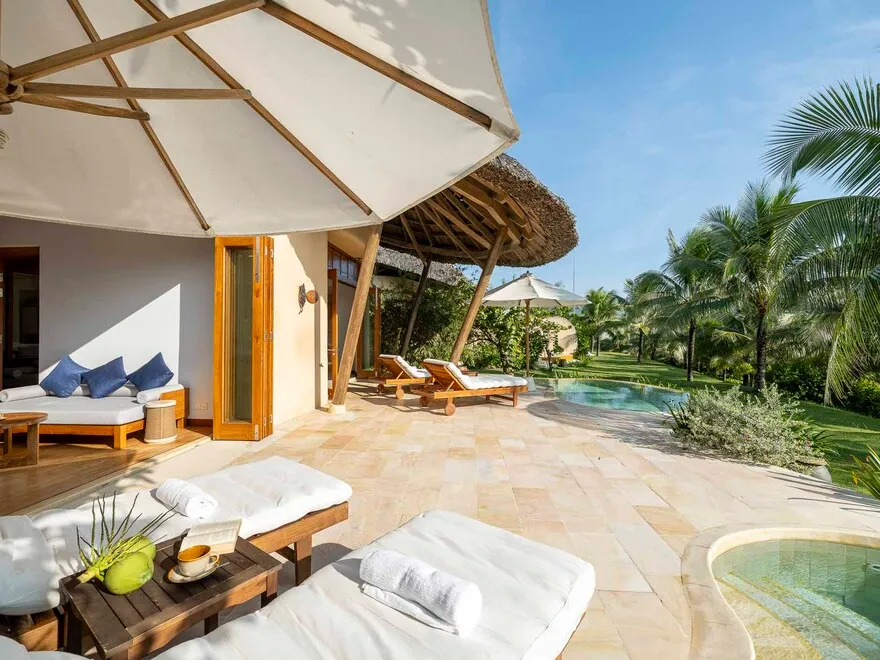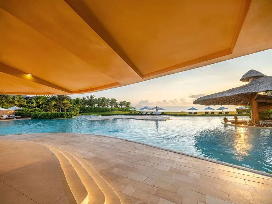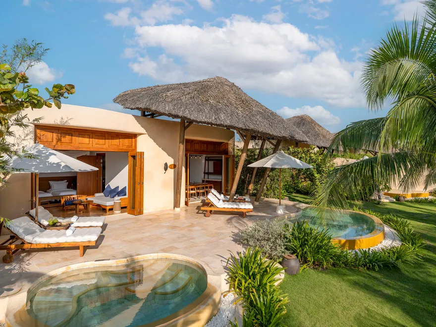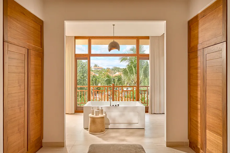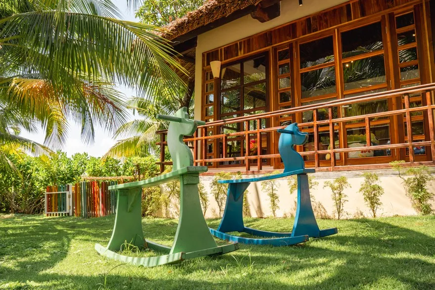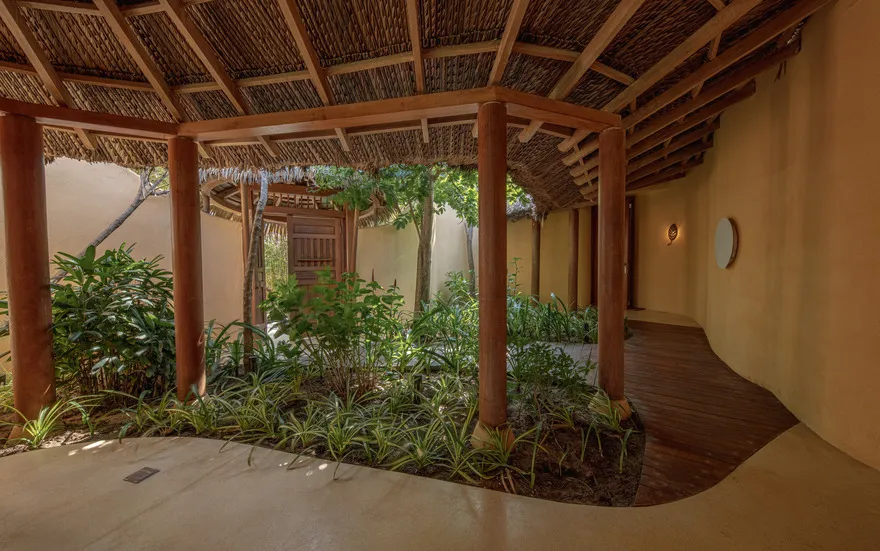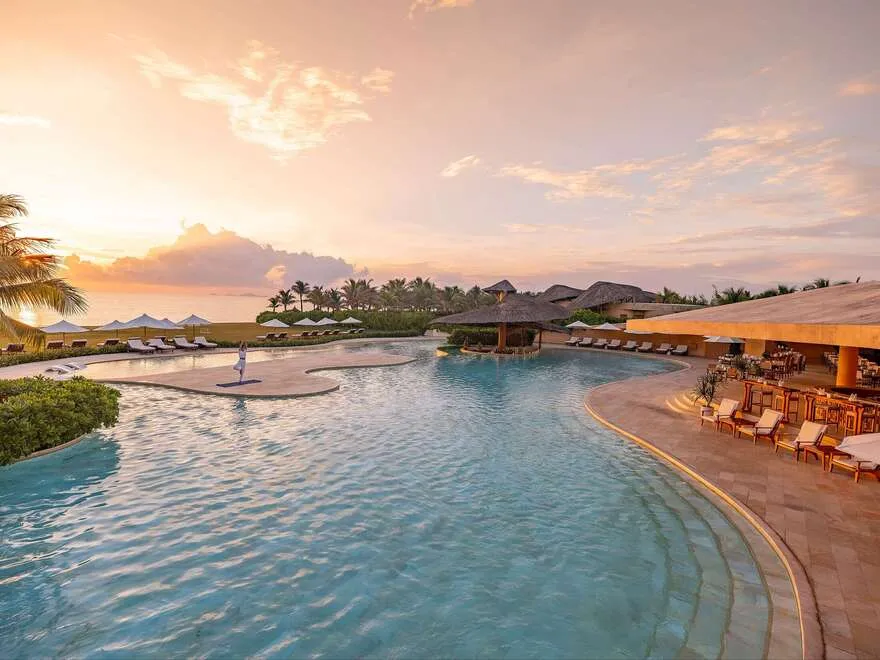 Sự sang trọng tại đây không đến từ những khối bê tông hào nhoáng mà nằm ở chiều sâu của hơi thở Indochine kết hợp cùng các vật liệu tự nhiên bản địa. Sự kết hợp tinh tế giữa gỗ ấm áp, đá thô mộc và gốm sứ tinh xảo trong từng ngóc ngách của resort tạo nên một không gian tĩnh lặng, gần gũi với đất mẹ. Lối thiết kế ưu tiên không gian mở giúp ranh giới giữa con người và thiên nhiên trở nên mờ nhạt, nơi du khách có thể chạm tay vào ánh nắng và cảm nhận gió biển len lỏi qua từng kẽ lá, mang lại trải nghiệm thư giãn tuyệt đối cho tâm hồn.