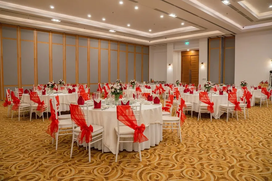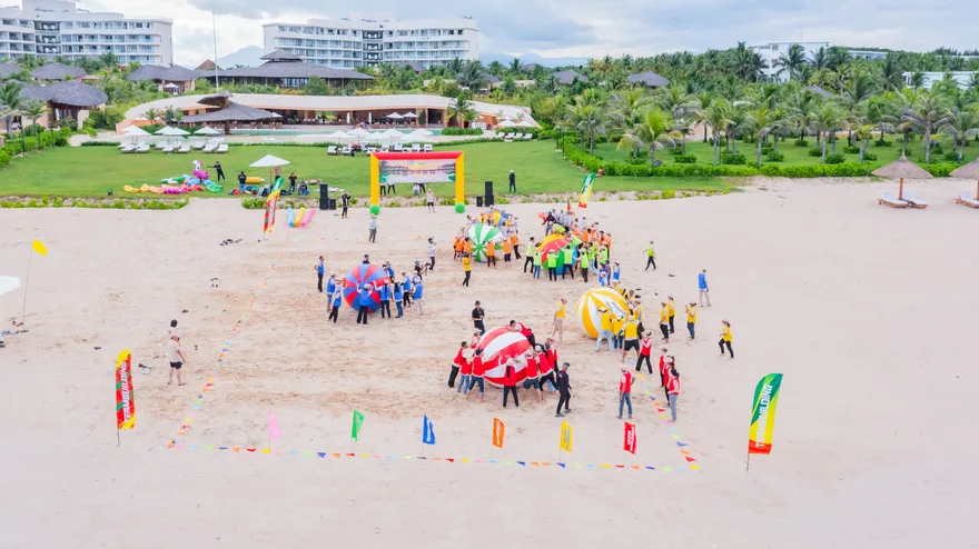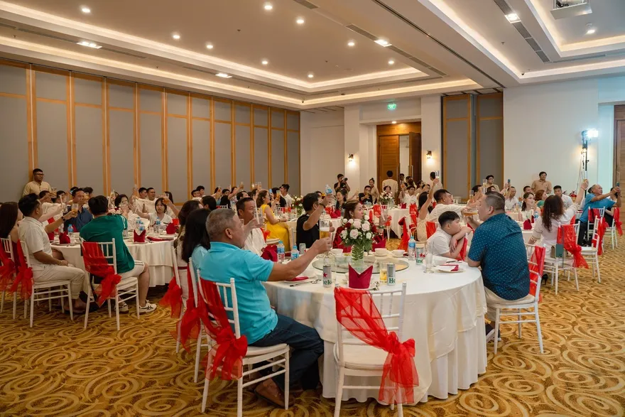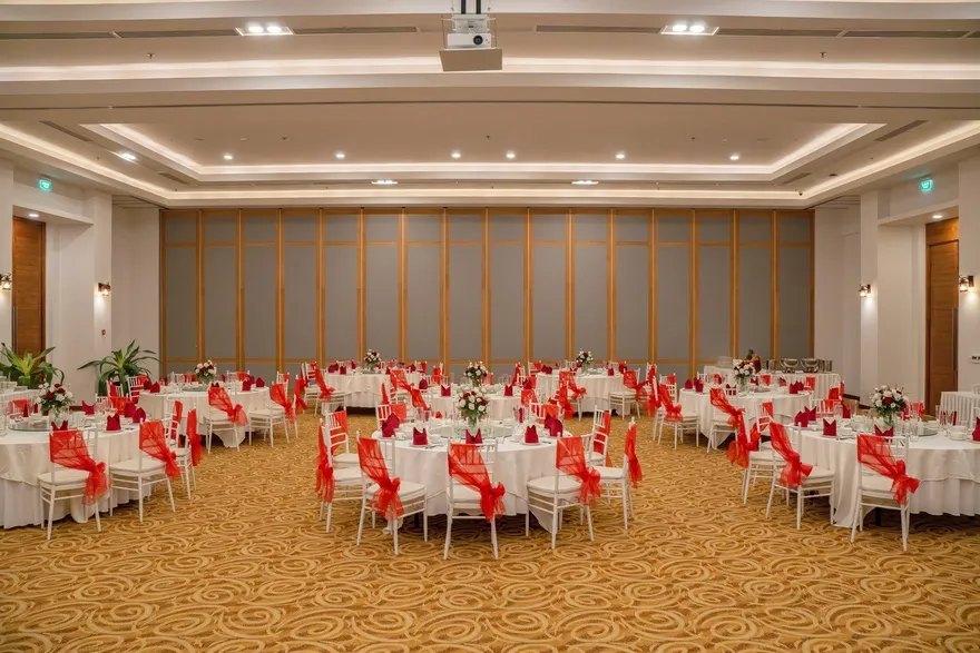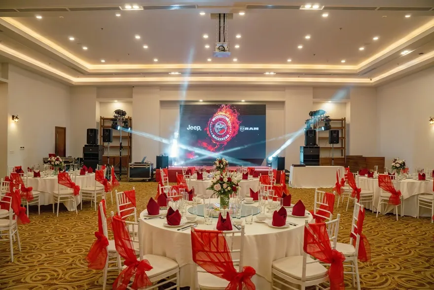 Đối với phân khúc khách hàng doanh nghiệp và sự kiện, khu nghỉ dưỡng sở hữu hệ thống hạ tầng MICE đẳng cấp với điểm nhấn là sảnh Grand Ballroom sang trọng có sức chứa lên đến 400 khách. Không gian hội nghị này được trang bị đầy đủ các thiết bị công nghệ hiện đại nhất, từ màn hình LED độ phân giải cao đến hệ thống âm thanh và ánh sáng chuyên nghiệp, đáp ứng mọi tiêu chuẩn khắt khe cho các buổi hội thảo quốc tế, lễ ra mắt sản phẩm hay những bữa tiệc Gala Dinner hoành tráng. Sự linh hoạt trong việc kết hợp giữa không gian sảnh trong nhà và các khu vực sân vườn ngoài trời giúp ban tổ chức dễ dàng triển khai nhiều loại hình sự kiện khác nhau, tạo nên dấu ấn chuyên nghiệp cho mỗi đoàn khách.