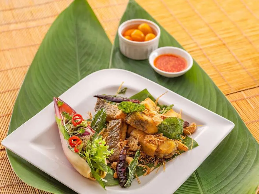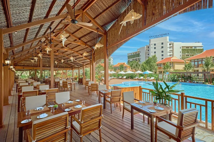 Nằm ngay sát mép sóng để đón nhận trọn vẹn hơi thở của đại dương, Ana Beach House mang đến một trải nghiệm ẩm thực phóng khoáng và thượng lưu hơn với phong cách hải sản Pan-Asian độc đáo. Điểm đặc trưng của nhà hàng này chính là mô hình bếp lửa mở, nơi thực khách có thể tận mắt chiêm ngưỡng những màn biểu diễn nghệ thuật của các đầu bếp bậc thầy khi họ chế biến hải sản tươi sống trên ngọn lửa hồng. Sự kết hợp giữa vị mặn mòi của gió biển, âm thanh của sóng vỗ và hương thơm quyến rũ từ gian bếp mở giúp mỗi bữa ăn tại Ana Beach House trở thành một kỷ niệm khó quên trong lòng du khách.