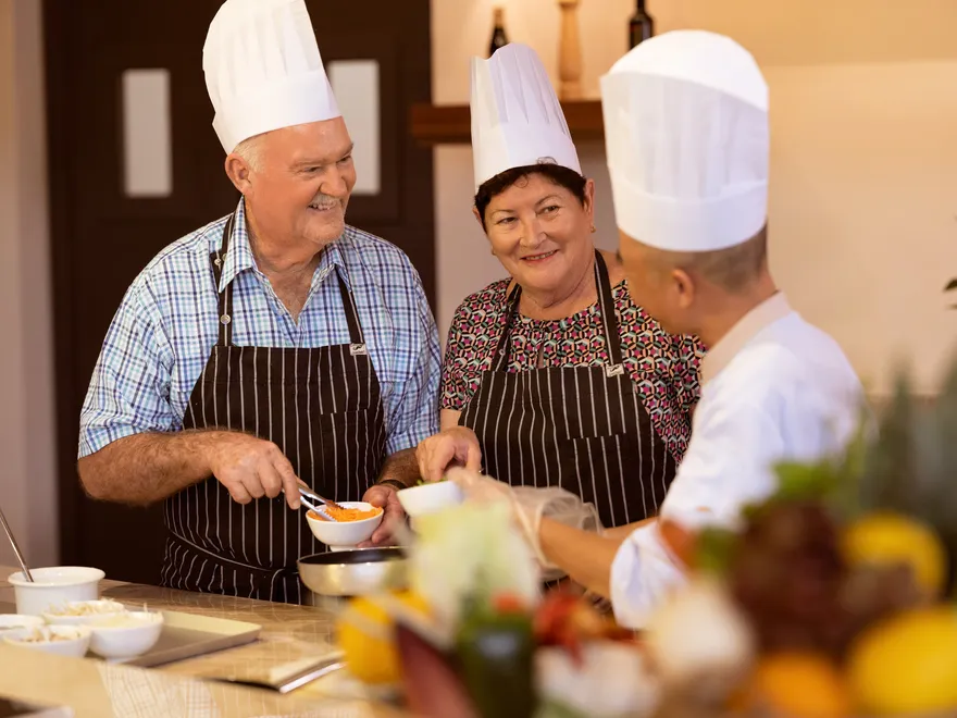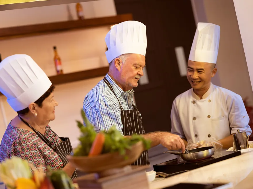 Các biệt thự (Villas) được trang bị khu vực pantry và tủ lạnh lớn, nhưng để đảm bảo an toàn phòng chống cháy nổ và vệ sinh môi trường, resort không cho phép du khách tự nấu nướng tại phòng. Thay vào đó, bạn có thể đặt dịch vụ đầu bếp riêng phục vụ tiệc BBQ tại sân vườn biệt thự.