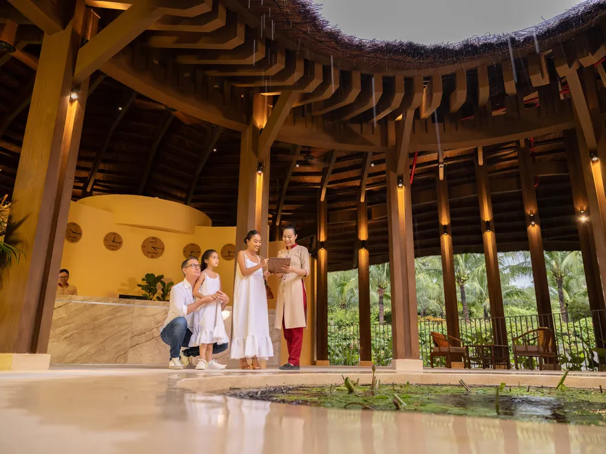 Bước chân vào Ana Mandara Spa, du khách như lạc vào một ốc đảo biệt lập hoàn toàn với thế giới bên ngoài. Tọa lạc trên những bungalow riêng biệt nằm rải rác trên một hòn đảo nhỏ giữa lòng đầm sen tĩnh lặng, không gian spa mang đến cảm giác thanh tịnh tuyệt đối ngay từ khoảnh khắc bước qua cây cầu dẫn. Đây không chỉ là nơi thực hiện các liệu pháp massage thông thường, mà là một hành trình chữa lành tâm hồn, nơi tiếng gió rì rào qua lá sen và hương thơm thảo mộc dẫn dắt tâm trí về trạng thái cân bằng nguyên bản.
