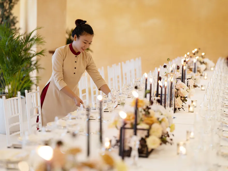 Không dừng lại ở các sự kiện thương mại, nơi đây còn là địa điểm khởi đầu cho những hành trình hạnh phúc với dịch vụ tiệc cưới bãi biển đầy lãng mạn. Dựa trên những tiêu chuẩn mới nhất từ bộ sưu tập Wedding Brochure 2024-2026, các chuyên gia tư vấn tiệc cưới tại resort sẽ đồng hành cùng lứa đôi để cá nhân hóa từng chi tiết nhỏ nhất, từ lễ đường ngập tràn hoa tươi trên bãi cát trắng đến thực đơn tiệc tối tinh tế dưới ánh hoàng hôn. Cho dù đó là một buổi lễ thân mật hay một đám cưới xa hoa bên bờ đại dương, Ana Mandara luôn biết cách biến những khoảnh khắc trọng đại trở thành những ký ức đẹp đẽ và vĩnh cửu giữa khung cảnh thiên nhiên tuyệt mỹ của vịnh Cam Ranh.