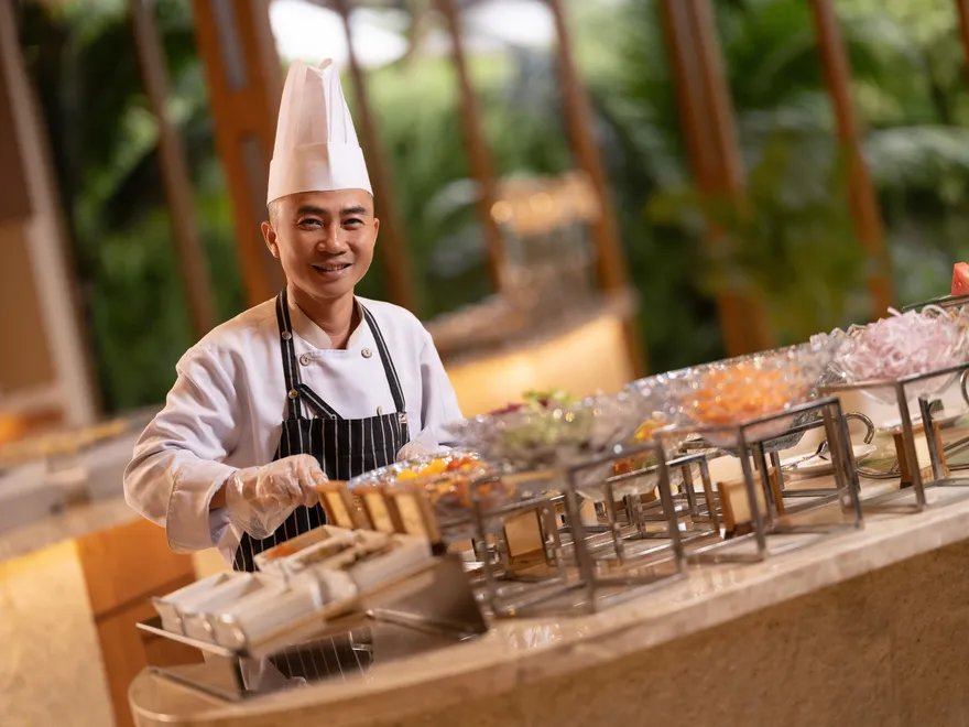 Hành trình ẩm thực tại Ana Mandara Cam Ranh là một cuộc dạo chơi đầy cảm hứng giữa những hương vị truyền thống thuần túy và sự tinh tế của ẩm thực quốc tế hiện đại. Nhà hàng Ana Sand House đóng vai trò là nhịp đập chính của hệ sinh thái ẩm thực, phục vụ thực khách xuyên suốt cả ngày trong một không gian kiến trúc mở khoáng đạt. Điểm nhấn không thể bỏ qua tại đây chính là bữa tiệc Buffet hải sản thịnh soạn vào mỗi tối thứ Bảy hàng tuần, nơi những đặc sản tươi ngon nhất của vịnh Cam Ranh được chế biến kỳ công, hòa quyện cùng giai điệu du dương của âm nhạc trực tiếp, tạo nên một không gian lễ hội ven biển thực thụ.