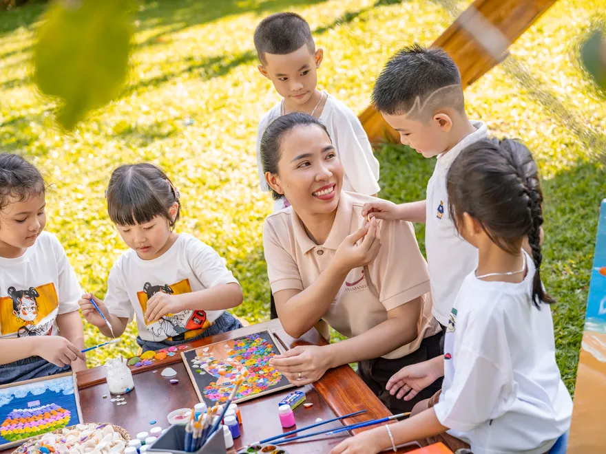 Ana Mandara Cam Ranh được định vị là điểm đến lý tưởng cho các gia đình đa thế hệ, nơi câu lạc bộ trẻ em Just Kids trở thành thiên đường sáng tạo dành riêng cho các thiên thần nhỏ. Tại đây, trẻ em không chỉ đơn thuần là vui chơi mà còn được tham gia vào các lớp học giáo trí mang đậm bản sắc văn hóa như làm nón lá thủ công hay nghệ thuật vẽ tranh cát. Những hoạt động này giúp các bé vừa rèn luyện tính kiên nhẫn, sự khéo léo, vừa có cơ hội tiếp xúc với tâm hồn Việt một cách tự nhiên nhất. Điều này cho phép các bậc phụ huynh hoàn toàn yên tâm tận hưởng thời gian riêng tư tại spa hay hồ bơi trong khi con cái được chăm sóc và học hỏi trong một môi trường an toàn, tràn đầy cảm hứng.