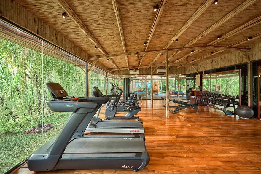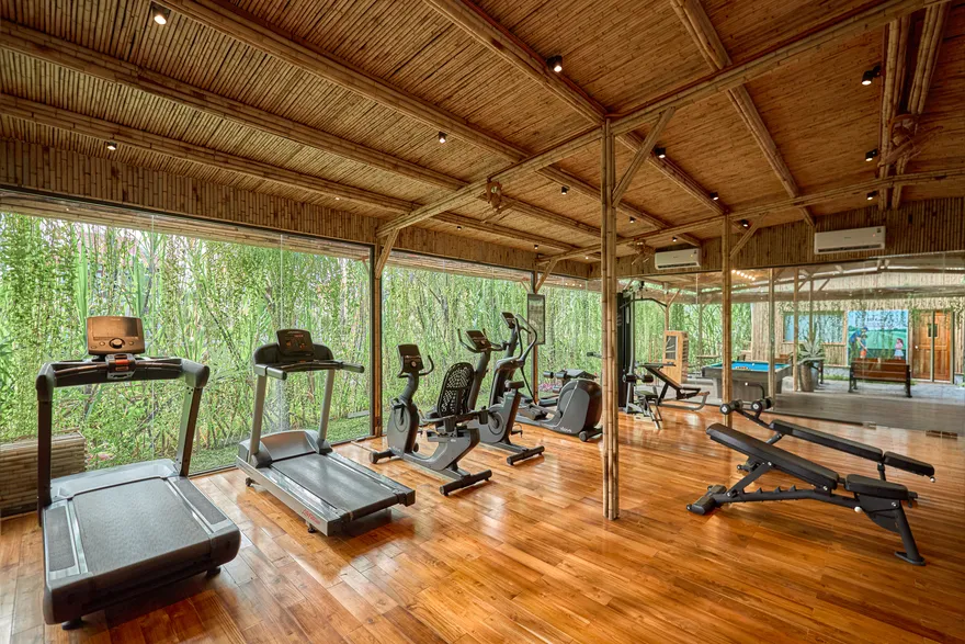 Hệ sinh thái sức khỏe của resort còn được mở rộng với những tiện ích đẳng cấp, đáp ứng nhu cầu thanh lọc cơ thể toàn diện. Từ hệ thống phòng xông hơi hiện đại đến liệu pháp tắm bùn khoáng Nha Trang trứ danh ngay tại chỗ, giúp làn da được nuôi dưỡng và thải độc hiệu quả. Đặc biệt, trung tâm Gym với thiết kế kính bao quanh mang lại tầm nhìn 360 độ hướng thẳng ra đầm sen xanh mát, cho phép du khách vừa tập luyện cường độ cao vừa tận hưởng khung cảnh thiên nhiên thơ mộng, tạo nên một trải nghiệm thể chất đầy cảm hứng và khác biệt.