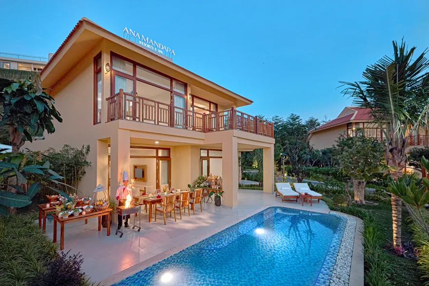 Bước xuống mặt đất, phân khu Ana Villa mở ra một không gian khoáng đạt với các căn biệt thự từ 1 đến 4 phòng ngủ, có diện tích dao động rộng rãi từ 105m² đến 448m². Đây là nơi hội tụ hoàn hảo cho các gia đình đa thế hệ, nơi mỗi thành viên đều tìm thấy sự riêng tư cần thiết trong một tổng thể gắn kết hài hòa với thiên nhiên. Điểm nhấn độc đáo và đáng giá nhất trong phân khúc này chính là Lagoon Villa – một “ốc đảo” đúng nghĩa dành cho những tín đồ của phong cách sống Wellness. Lưu trú tại đây, du khách không chỉ tận hưởng không gian đầm sen tĩnh mịch mà còn được thụ hưởng những đặc quyền thượng lưu như thưởng thức trà chiều tinh tế mỗi ngày và trải nghiệm liệu trình Spa 60 phút chuyên sâu, giúp tái tạo năng lượng hoàn hảo cho thân – tâm – trí.